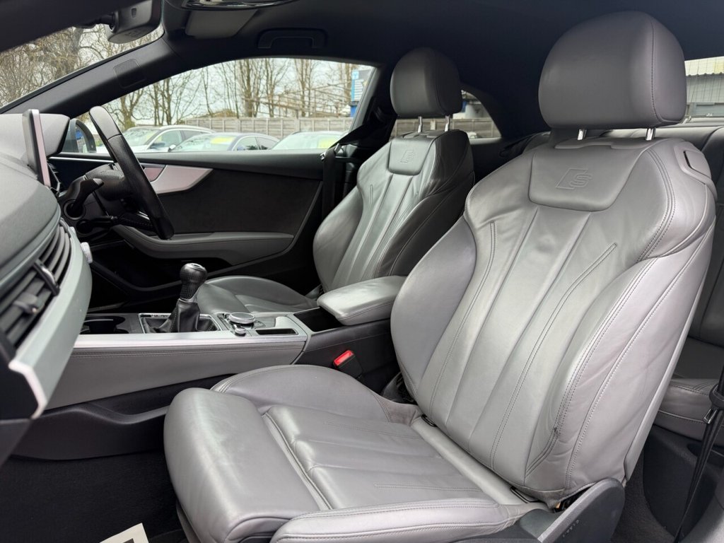 This 2016 Audi A5 TFSI S line boasts a full service history, ensuring its excellent provenance. This stylish coupe features a 2.0 litre petrol engine and is presented in the desirable S line trim. Notable features include 19 inch multi spoke alloy wheels in a contrasting grey with a partly polished finish, a Comfort and Sound Package with keyless entry, and a Light and Vision Pack complete with LED headlights and headlight washers. The extended interior upholstery pack further enhances the cabin's premium feel. This Euro 6 compliant A5 offers impressive efficiency, achieving up to 50 miles per gallon, which is a significant advantage over many similar vehicles. Its low CO2 emissions and low insurance group also contribute to lower running costs, making it a sensible choice. Furthermore, the vehicle will be provided with a 12 month MOT for your peace of mind.