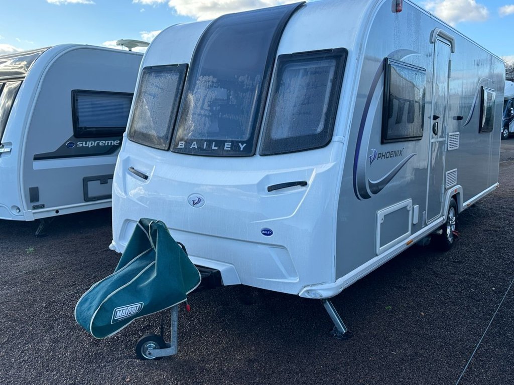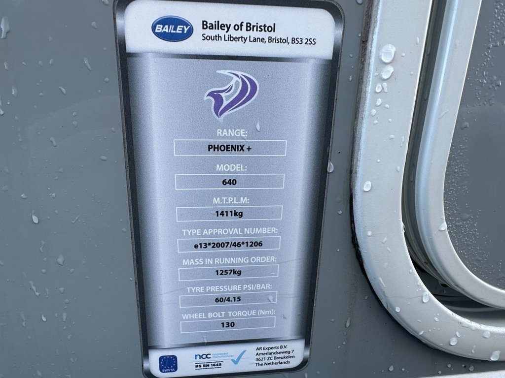 Motorhome World are delighted to offer this 2022 REGISTERED luxury 4 berth Bailey Phoenix + 640 BAILEY PHOENIX + 640 - 4 BERTH FIXED REAR ISLAND BED TOURING CARAVAN - CENTRE WASHROOM E-MOVE MOTOR MOVER FITTED Exceptional example of this quality built, 4 berth fixed island bed tourer. Front lounge seating with double bed, Central kitchen with fridge/freezer/worksurface area opposite, Centre washroom which shuts off from either side to include toilet and sink unit and a separate shower cubicle opposite, Extending fixed rear island bed with wardrobe storage either side. Some of the features that this caravan benefits from Alloy Wheels, ALKO Stabiliser, ALKO ATC, Mains Electric, Battery Charger, Blinds/Flyscreens, Truma Combi Heating, Cassette Electric Flush Toilet, DAB Radio/Bluetooth/USB/Aux, Fridge/Freezer, Microwave, Hob/Oven/Grill, Panaramic Roof Light, TV Aerial, Removable Carpets, External BBQ Point, Avtex WiFi Antenna Accesories includes are AWNING, EXTERNAL WATER PUMP,HOOK UP CABLE , CHAIRS, 2 x 12 VOLT TELEVISIONS. This tourer will come with a full HPI clear check and comes with a 12 MONTHS comprehensive warranty & a full N.C.C.approved workshop habitation check. DIMENSIONS & WEIGHTS: External length - 24' 2" / 7.37m Internal length – 19' 2" / 5.84m Width – 7' 3" / 2.21m Est unladen weight - 1257 kg Max laden weight - 1411 kg