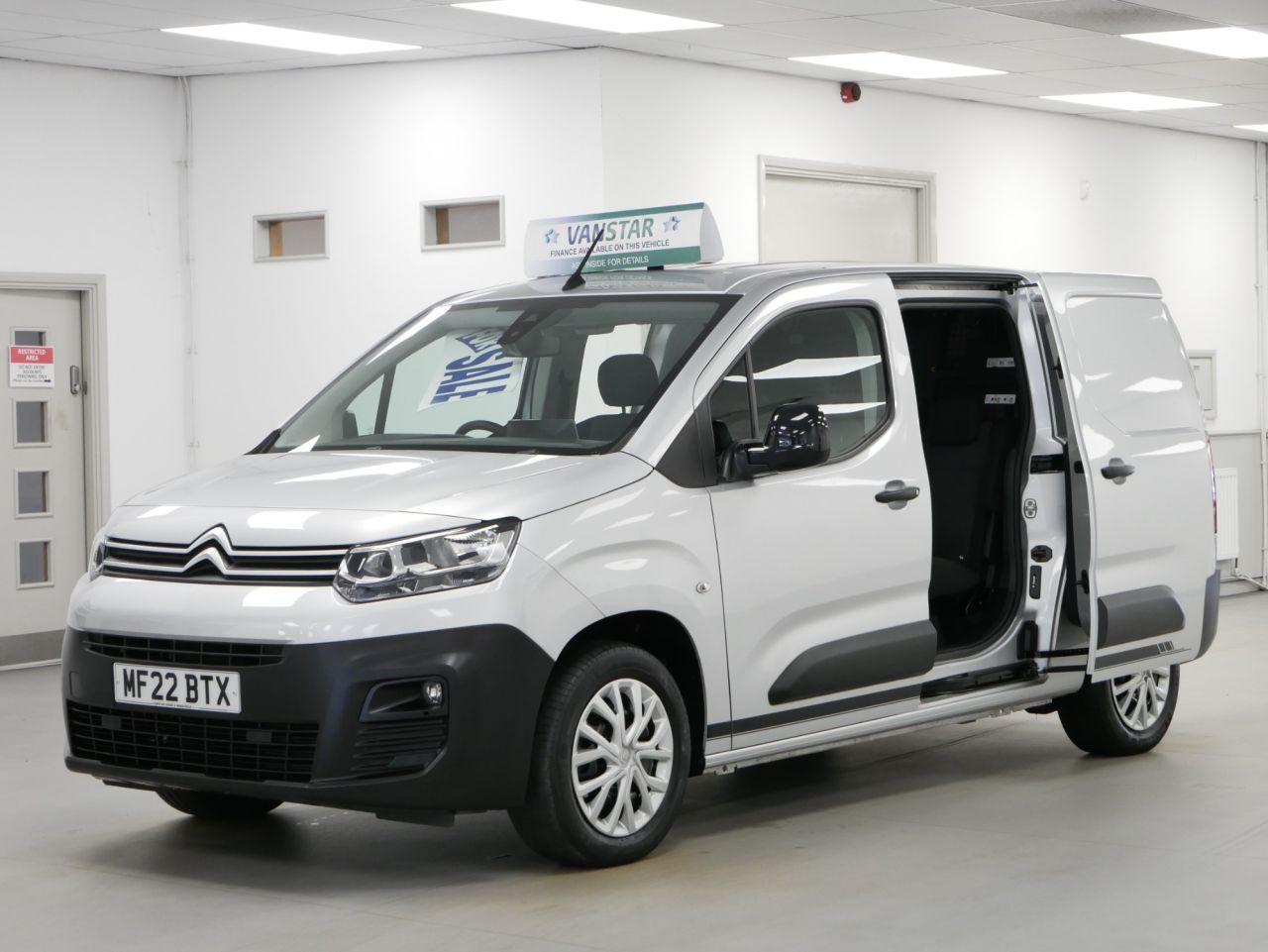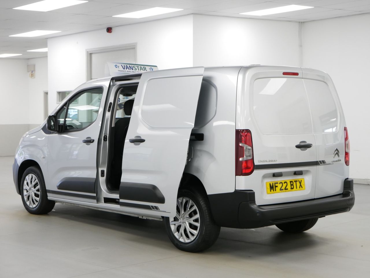 2022 Plate Citroen Berlingo XL 1.5 BlueHDI 100 BHP 850 KG Long Wheelbase Enterprise Edition 5 Seater Crewcab .. Great Spec Example in Silver with Air Con , SAT NAV / CARPLAY MEDIA , 5 SEATER CREWCAB , TWIN SIDE DOORS / 6DR SPEC , LONG WHEELBASE , Electric Windows + Mirrors , Limiter + Cruise Control , Bluetooth , DAB Radio , Park Sensors , Cargo Lined , Load Guard , Plus all usual styling and refinements found in the Great Spec Enterprise Edition models .. Euro 6 Compliant .. 2 Owners , Just 24000 Miles , Serviced ! Great Spec , In Stock Now , Ready To Go !