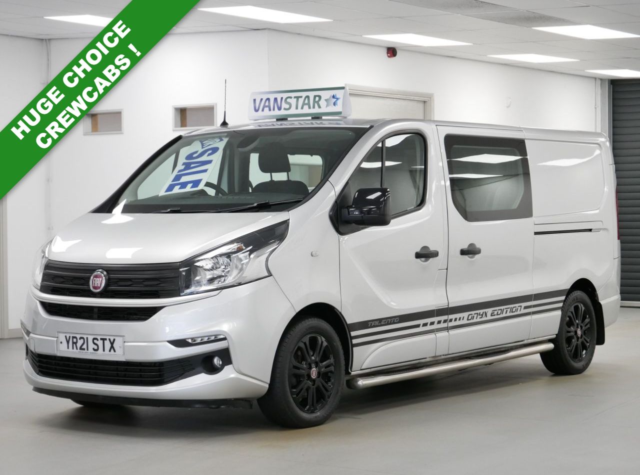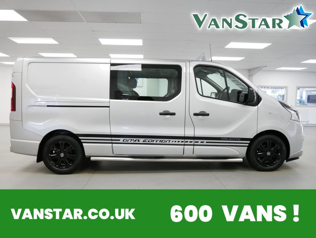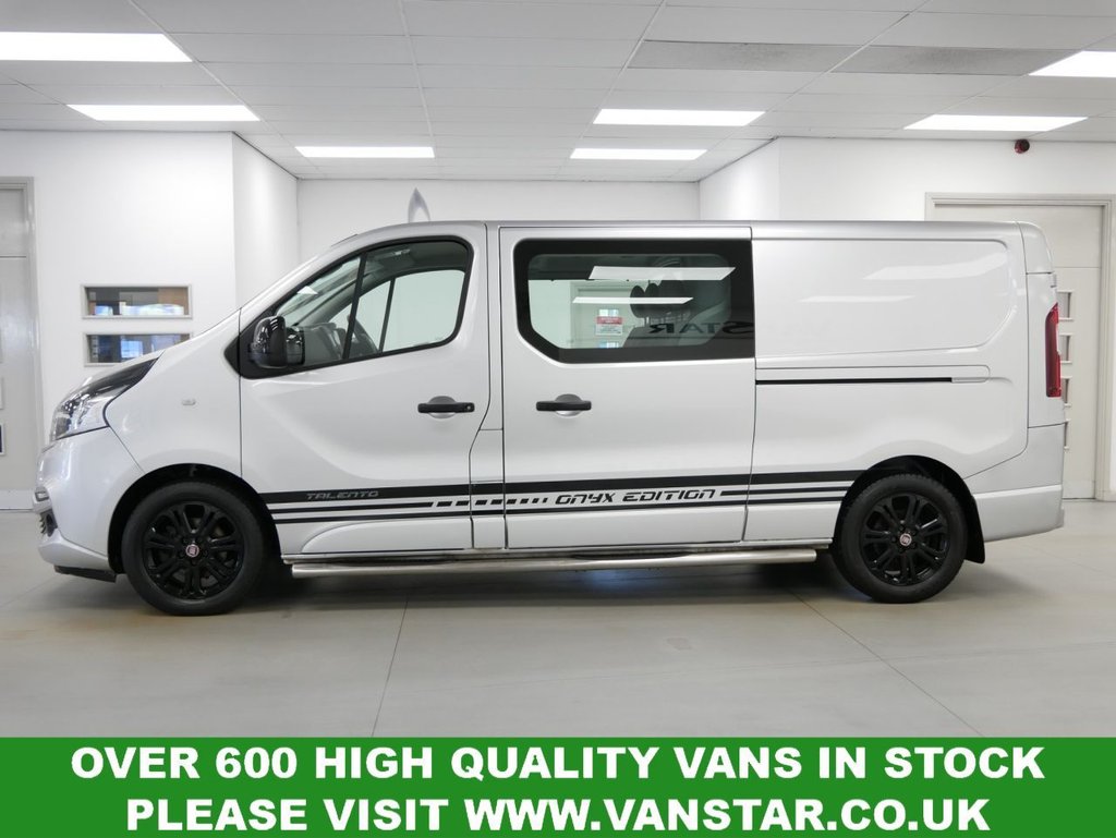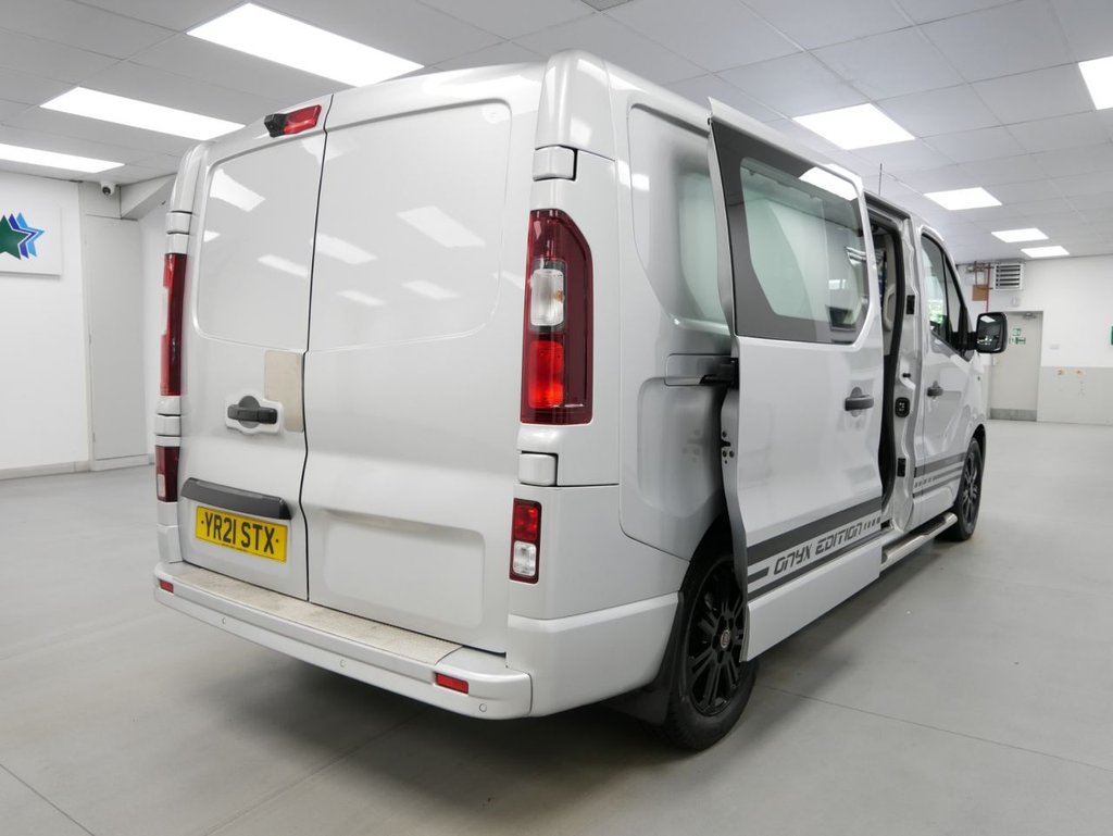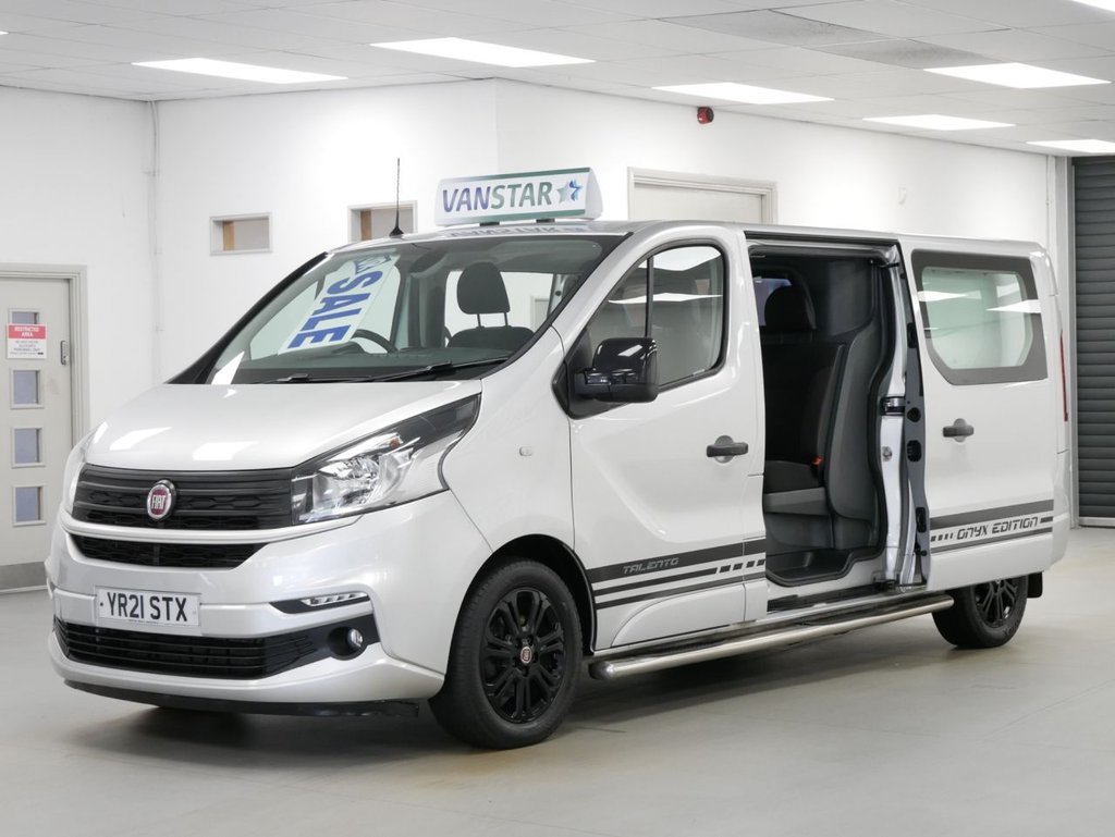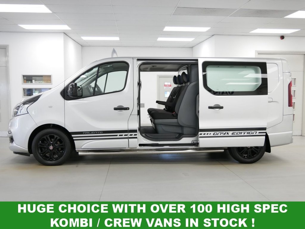 NO VAT ! .. 2021 Plate Fiat Talento 12 2.0 EcoJet 170 BHP L2 Long Wheelbase Onyx Edition 6dr Crewcab 6 Seater Automatic .. High Spec No VAT Example in Metallic Grey with Air Con , Black Alloys , FACTORY SAT NAV MEDIA , 6 SEATS , HIGHER 170 BHP OUTPUT ENGINE , AUTOMATIC GEARBOX , L2 LONG WHEELBASE , TWIN SIDE ACCESS DOORS / 6 DOORS , Electric Windows + Mirrors , Privacy , Bluetooth , Cruise Control , Park Sensors , Reverse Camera , Cargo Lining , Bulkhead , Plus all usual styling and refinements found in the High Spec Onyx Edition models .. Euro 6 Compliant .. Just 79000 Miles , 3 x Services ! Best of all , No VAT To Pay !