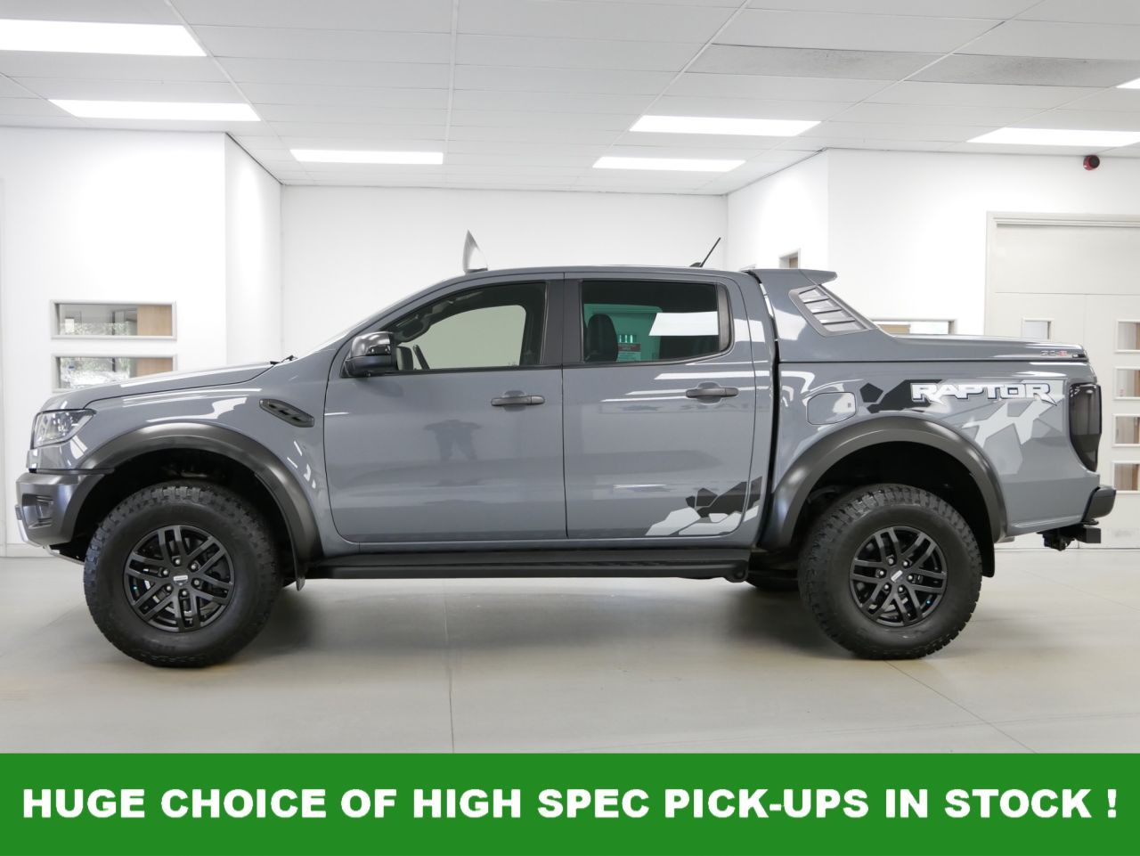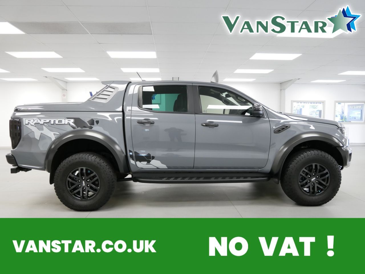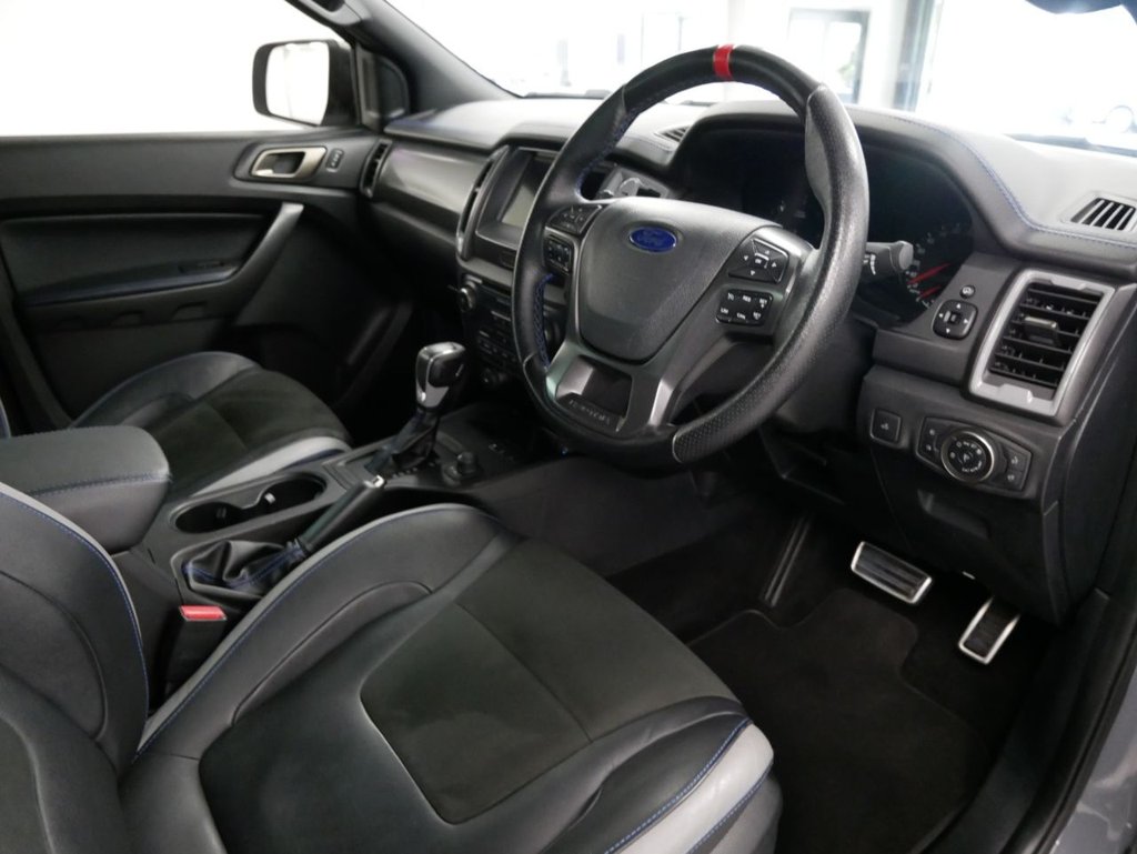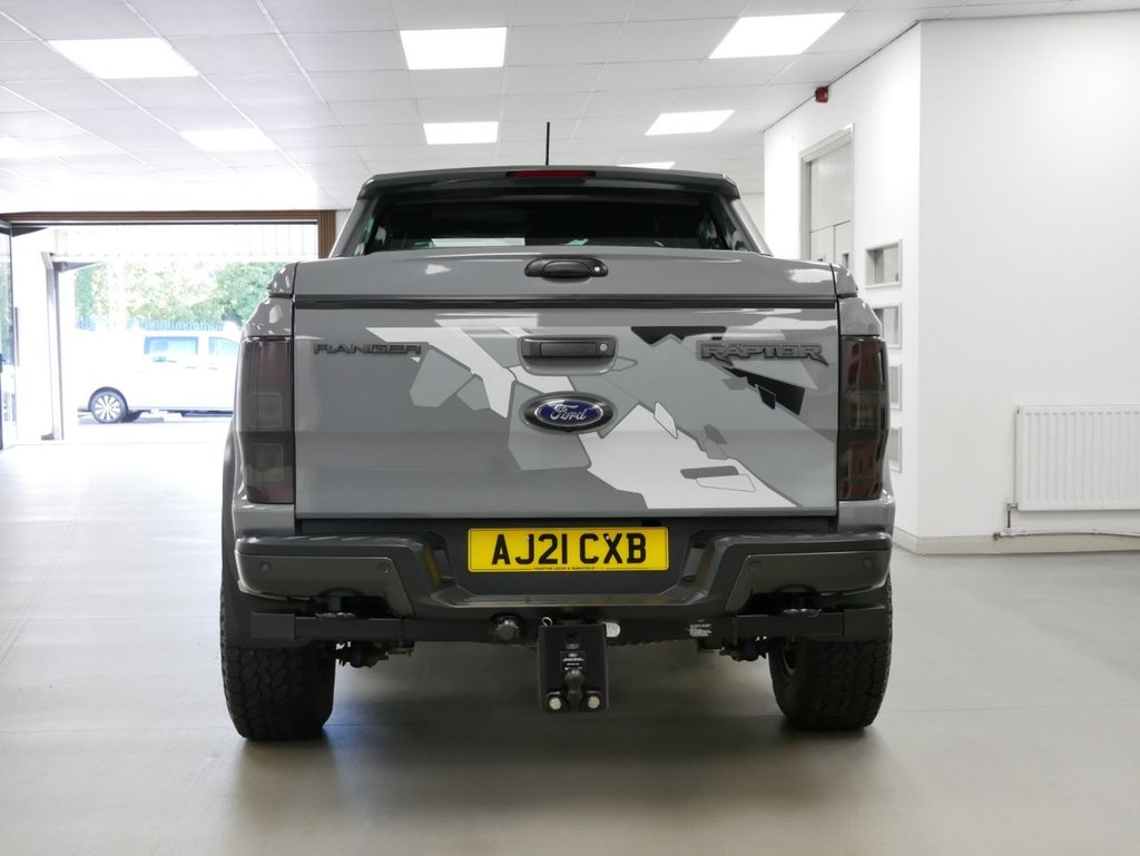 NO VAT ! . 2021 Plate Ford Ranger 2.0 EcoBlue 213 BHP Raptor Edition 4WD Automatic Crewcab Pickup . High Spec No VAT Example in Conquer Grey with Air Con , Black Alloys , FACTORY SAT NAV MEDIA , SC-Z SPORTBACK LIFT COVER , RAPTOR DECAL DESIGN PACK , FULL BACK LEATHER INTERIOR WITH GREY INSERTS , AUTOMATIC GEARBOX , FOUR WHEEL DRIVE , Heated Seats , Electric Windows + Mirrors , Power Folding Mirrors , Limiter + Cruise Control , Privacy Glass , Bluetooth , DAB Radio , Park Sensors , Reverse Camera , Side Steps , Tow Pack , Plus all usual styling and refinements found in the Higher Spec RAPTOR EDITION models . Euro 6 Compliant . Just 18000 Miles From New , Main Dealer Serviced ! Best of all , No VAT To Pay !
