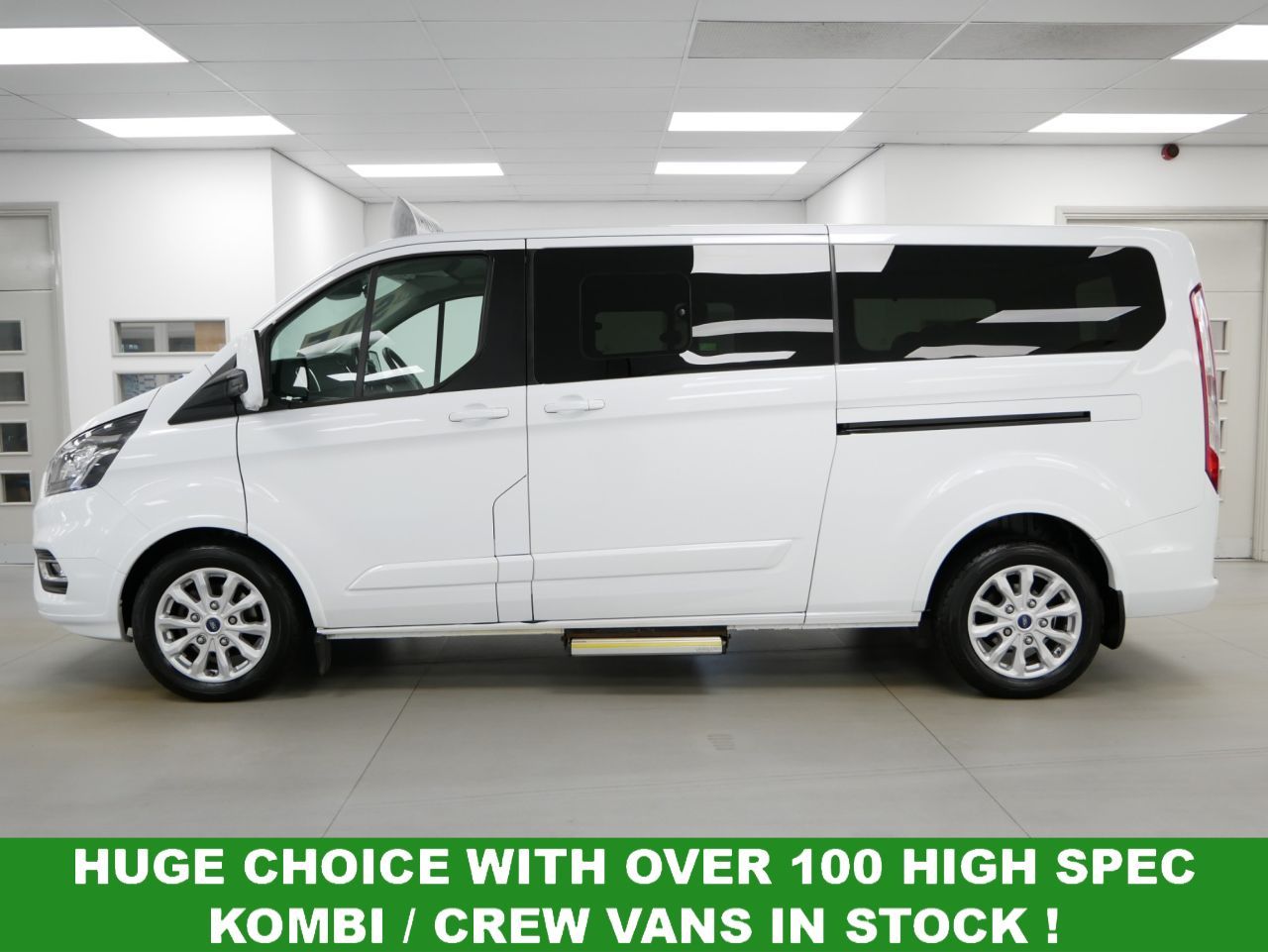 NO VAT ! . 72 Plate Ford Tourneo Custom 320 2.0 EcoBlue 130 BHP L2 Long Wheelbase Titanium Edition 9 SEATER Automatic Minibus .High Spec No VAT Example in Frozen White with Air Con , Alloys , FACTORY SAT NAV MEDIA , 9 SEATS , TITANIUM X SPEC , FULL LEATHER INTERIOR , L2 LONG WHEELBASE , AUTOMATIC GEARBOX , Twin Side Access Doors + Tailgate , Heated Front Seat , Heated Front Screen , Electric Windows + Mirrors , Power Folding Mirrors , Privacy , Bluetooth , Cruise Control , Factory Front + Rear Parking Sensors , Plus all usual styling and refinements found in the High Spec Titanium Edition models . Euro 6 Compliant . ONLY 1 OWNER FROM NEW , 80000 Miles , Excellent History ( 3 x Services ) . Great Spec , Best of all , No VAT To Pay !