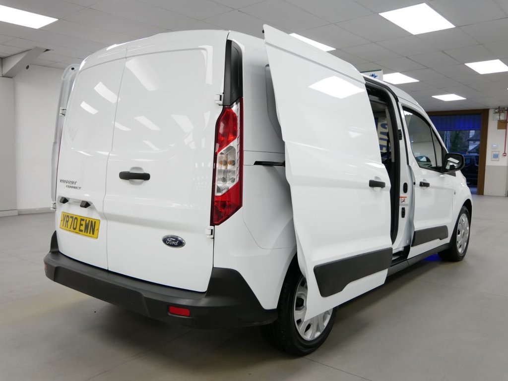 NO VAT ! . 70 Plate Ford Transit Connect 1.5 EcoBlue 100 BHP L2 230 Long Wheelbase Trend Edition 6 Door Crewcab 5 Seater . Great Spec Rare No VAT Example in Frozen White with Air Con , 5 Seats , TWIN SIDE ACCESS DOORS / 6 DOOR , L2 Long Wheelbase , Upgraded 230 Weight Spec , Electric Windows + Mirrors , Bluetooth , DAB Radio , Cargo Lined , Plus all usual styling and refinements found in the Higher Spec Trend Edition models . Euro 6 Compliant . Only 1 Owner , JUST 41000 Miles , SERVICED ! Best of all , No VAT To Pay !