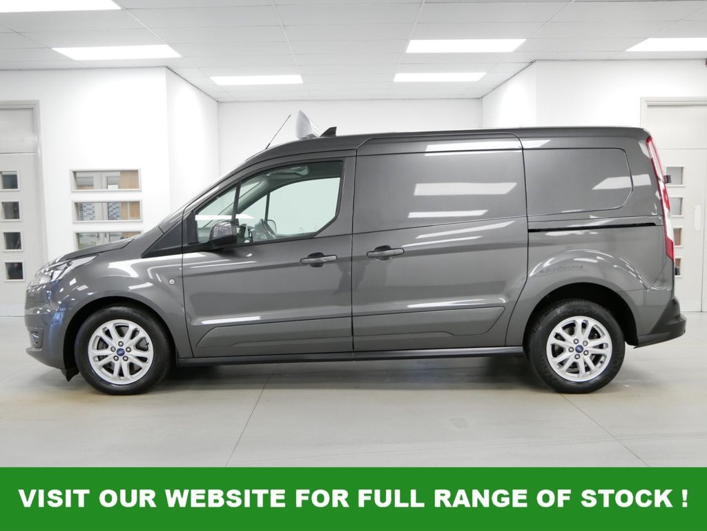 2023 Plate Ford Transit Connect 1.5 EcoBlue 100 BHP L2 250 Long Wheelbase Limited 5dr . High Spec Example in Metallic Magnetic Grey with Air Con , Alloys , 3 X SEATS , FACTORY SAT NAV MEDIA , L2 LONG WHEELBASE , UPGRADED 250 WEIGHT SPEC , Heated Front Screen , Heated Seat , Electric Windows + Mirrors , Remote Central Locking , Power Folding Mirrors , Bluetooth , Factory Rear Parking Sensors , Keyless Entry + Start , Factory Rear Parking Camera , Cargo Lining , Bulkhead , Plus all usual styling and refinements found in the Higher Spec Limited Edition models . Euro 6 Compliant . ONLY 1 OWNER , 54000 MILES , Serviced ! Great Spec , Physical Stock !