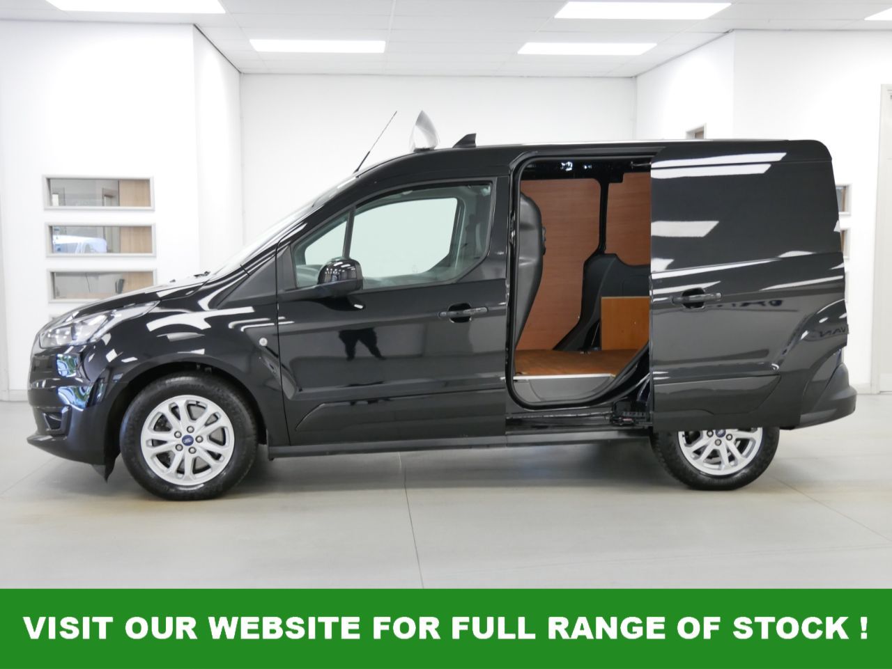74 Plate Ford Transit Connect 1.5 EcoBlue 100 BHP L1 240 Limited Edition SWB 5dr . High Spec Example in Metallic Agate Black with Air con , Alloys , 3 x SEATS , FACTORY SAT NAV MEDIA , REAR PARKING CAMERA , UPGRADED 240 WEIGHT SPEC , Electric Windows + Mirrors , Remote Central Locking , Heated Front Screen , Bluetooth , Heated Front Seat , Factory Rear Parking Sensors , Bulkhead , Cargo Lining , Plus all usual styling and refinements found in the Higher Limited Edition models . Euro 6 Compliant . ONLY 1 OWNER , JUST 20000 MILES FROM NEW , Serviced ! Great Spec , Physical Stock !