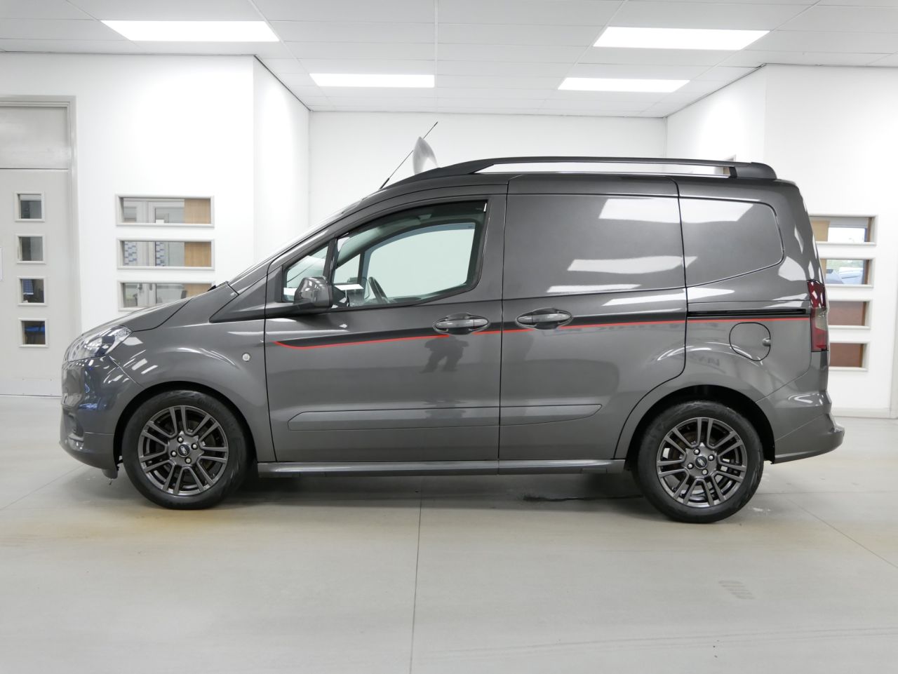 2022 Plate Ford Transit Courier 1.5 TDCi 100 BHP Sport Edition 5dr . High Spec Example in Metallic Magnetic Grey with Air Con , Black Alloys , RARE GLAZED TAILGATE MODEL , TWIN SIDE ACCESS DOORS , FACTORY SAT NAV MEDIA , HEATED FRONT SEATS , 6 SPEED GEARBOX , Higher 100 Bhp Output Engine , Electric Windows + Mirrors , Remote Central Locking , Heated Front Screen , Cruise Control , Factory Front & Rear Parking Sensors , Front Fog Lights , Bluetooth , Cargo Lining , Bulkhead , Sport Decal Pack , Factory Rear Parking Camera , Plus all usual styling and refinements found in the High Spec Sport Edition models . Euro 6 Compliant . 2 Owners , JUST 23000 MILES FROM NEW ! Excellent History ( 3 x Main Dealer Services ! ) . Great Spec , Ready to Go !
