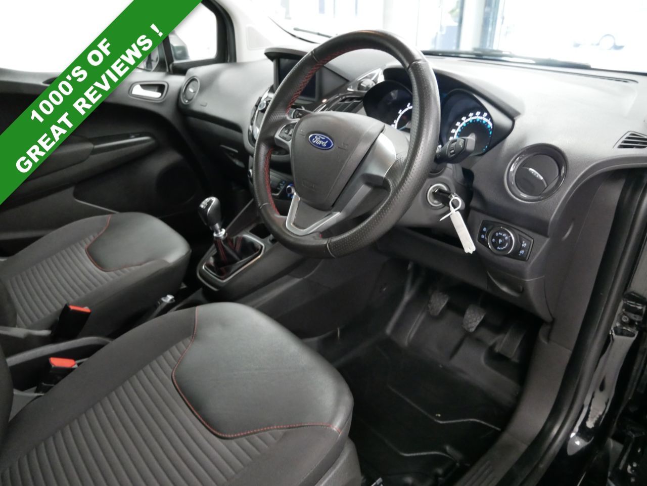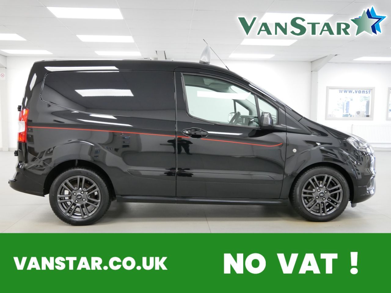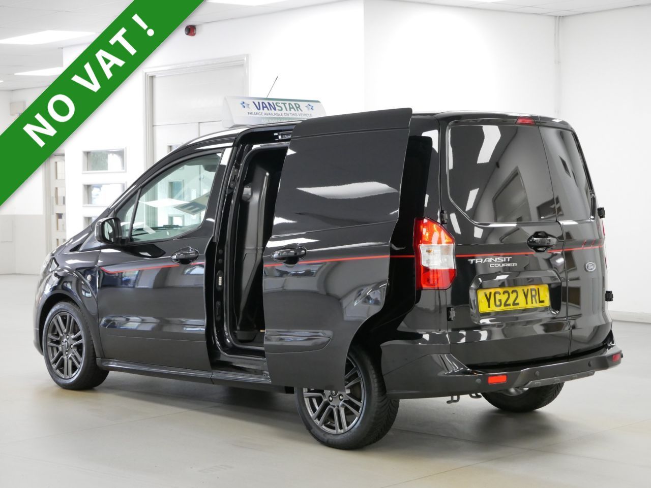 NO VAT ! . 2022 Plate Ford Transit Courier 1.0 EcoBoost 100 BHP Sport Edition 5dr . High Spec No VAT Example in Metallic Black with Air Con , Alloys , FACTORY SAT NAV MEDIA , SPORT EDITION DECAL DESIGN PACK , HALF LEATHER SPORT DESIGN INTERIOR , Electric Windows + Mirrors , Power Folding Mirrors , Bluetooth , Cruise Control , Park Sensors , Cargo Lining , Bulkhead , Plus all usual styling and refinements found in the High Spec Sport Edition models . Euro 6 Compliant . Only 2 Owners , Just 48000 Miles , 4 x Services ! Best of all , No VAT To Pay !