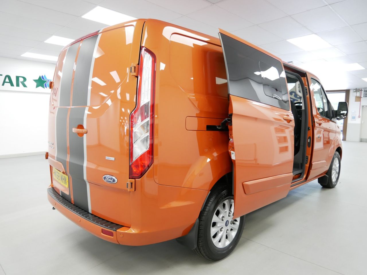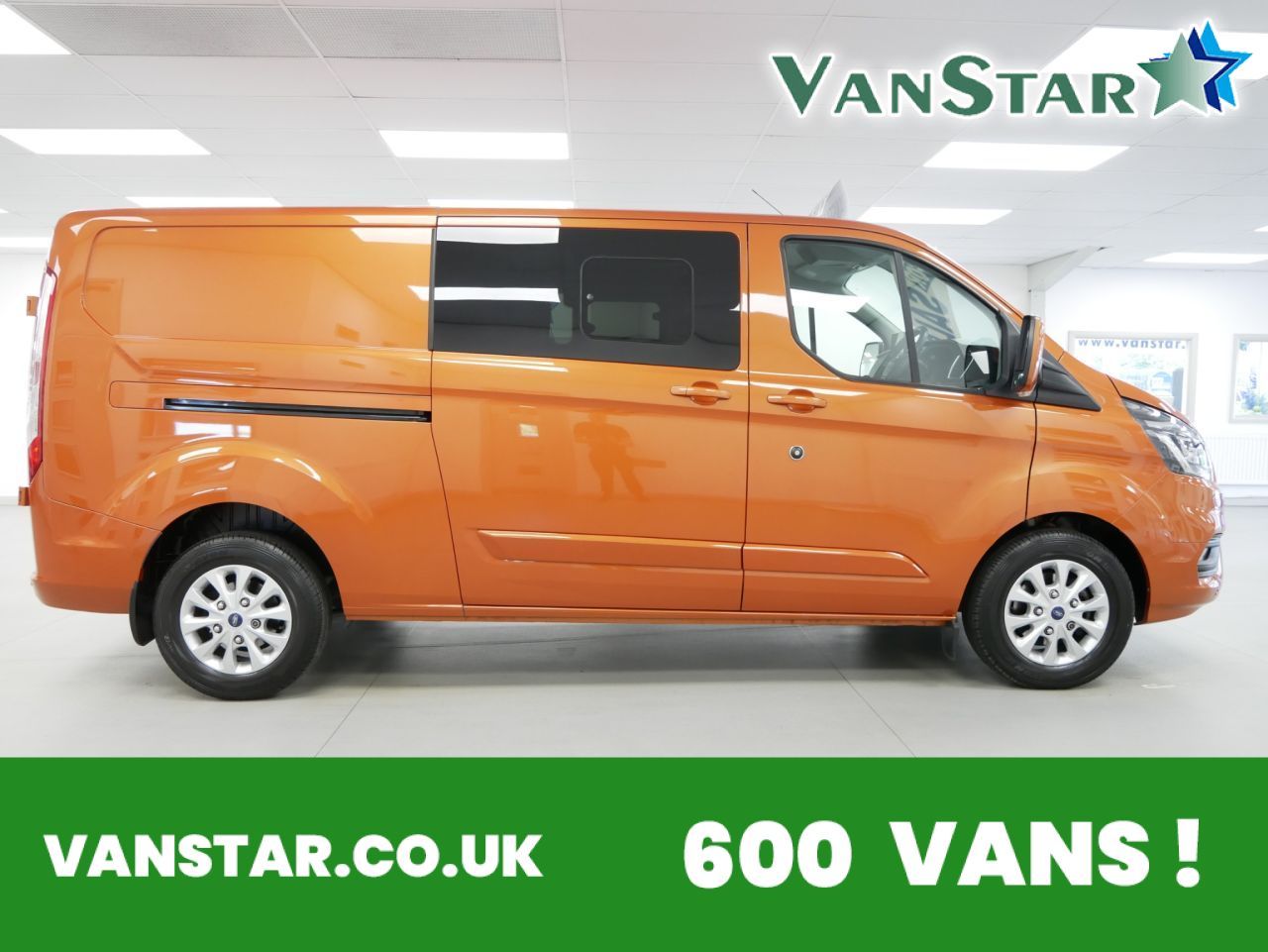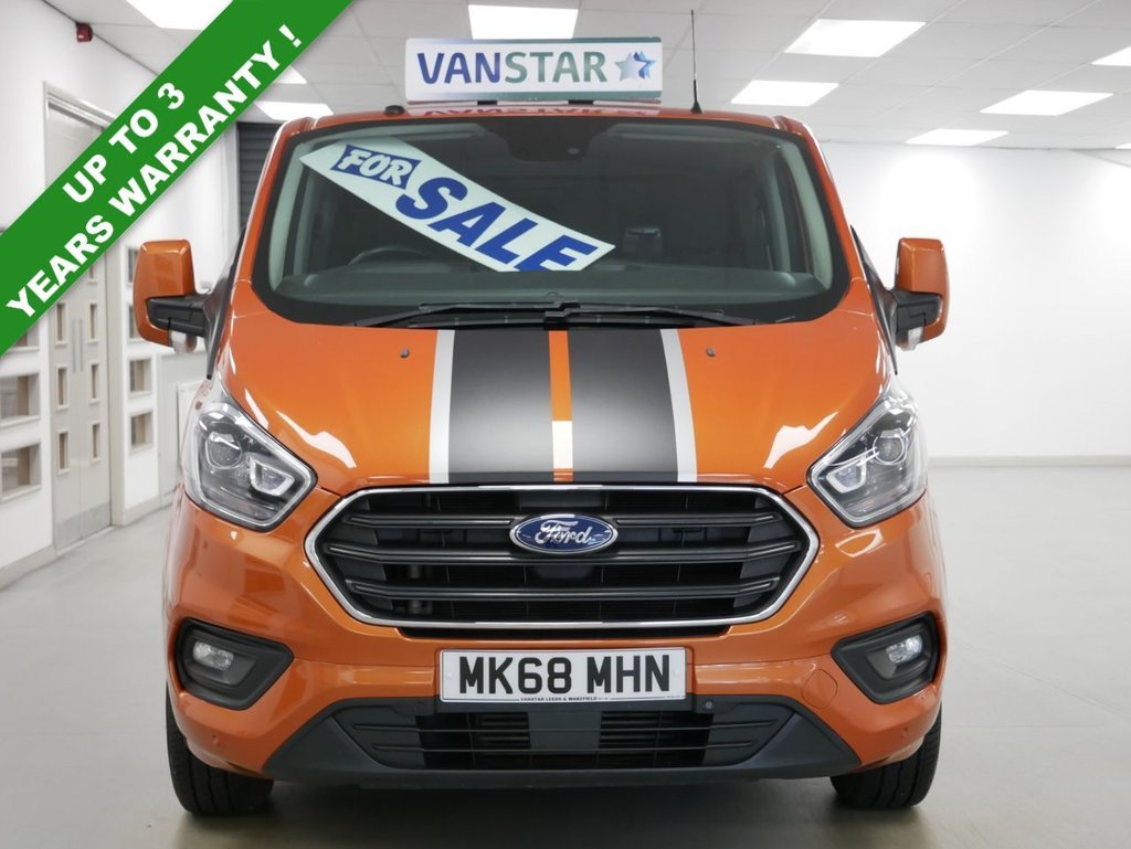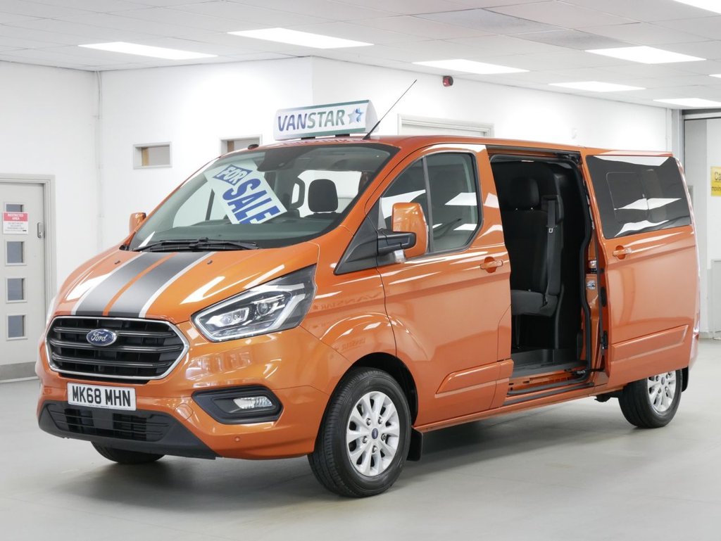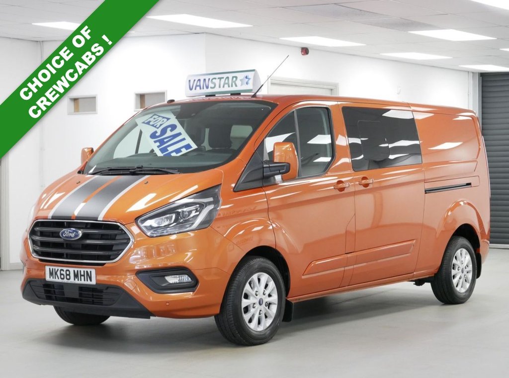 NO VAT ! . 68 Plate Ford Transit Custom 320 2.0 EcoBlue L2 Long Wheelbase Limited Edition Crewcab 6 Seater . Stunning Low Mileage Example in Orange Glow with Air Con , Alloys , SAT NAV CARPLAY MEDIA , 6 SEATER , TWIN SIDE ACCESS DOORS / 6DR SPEC , L2 LONG WHEELBASE , UPGRADED 320 WEIGHT CLASS , HIGHER 170 BHP ENGINE OUTPUT , Electric Windows + Mirrors , Power Folding Mirrors , Privacy Glass , Limiter + Cruise Control , DAB Radio , Bluetooth , Park Sensors , Cargo Lined , Bulkhead , Plus all usual styling and refinements found in the Great Spec Limited Edition models . Euro 6 Compliant . 2 Owners , Just 26000 Miles , Excellent History ( 5 x Service Stamps ! ) Best of all , No VAT To Pay !