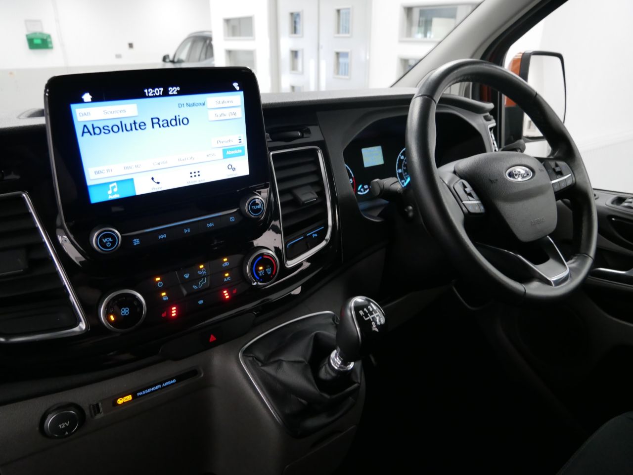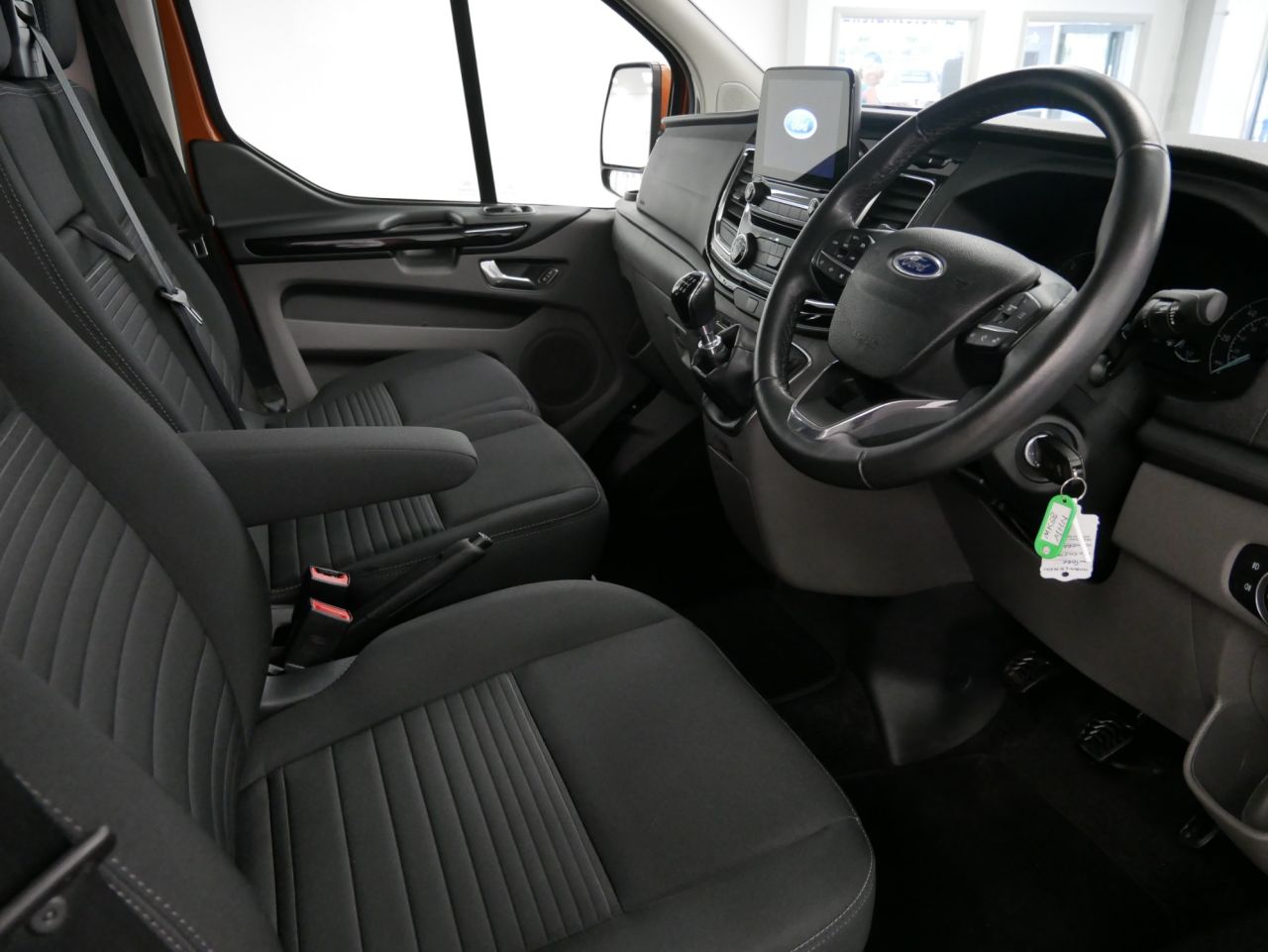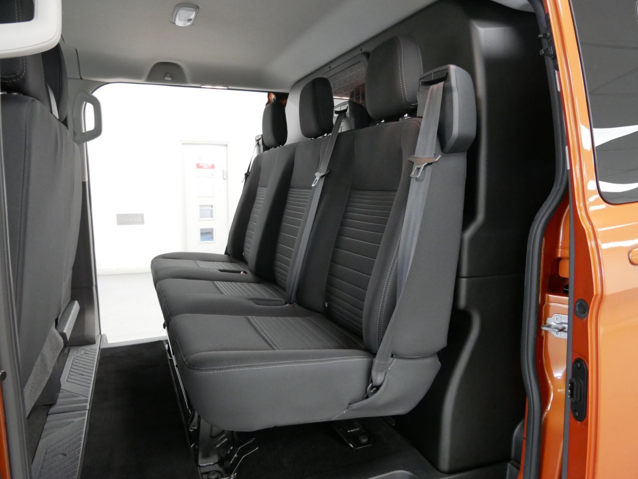NO VAT ! . 68 Plate Ford Transit Custom 320 2.0 EcoBlue L2 Long Wheelbase Limited Edition Crewcab 6 Seater . Stunning Low Mileage Example in Orange Glow with Air Con , Alloys , SAT NAV CARPLAY MEDIA , 6 SEATER , TWIN SIDE ACCESS DOORS / 6DR SPEC , L2 LONG WHEELBASE , UPGRADED 320 WEIGHT CLASS , HIGHER 170 BHP ENGINE OUTPUT , Electric Windows + Mirrors , Power Folding Mirrors , Privacy Glass , Limiter + Cruise Control , DAB Radio , Bluetooth , Park Sensors , Cargo Lined , Bulkhead , Plus all usual styling and refinements found in the Great Spec Limited Edition models . Euro 6 Compliant . 2 Owners , Just 26000 Miles , Excellent History ( 5 x Service Stamps ! ) Best of all , No VAT To Pay !