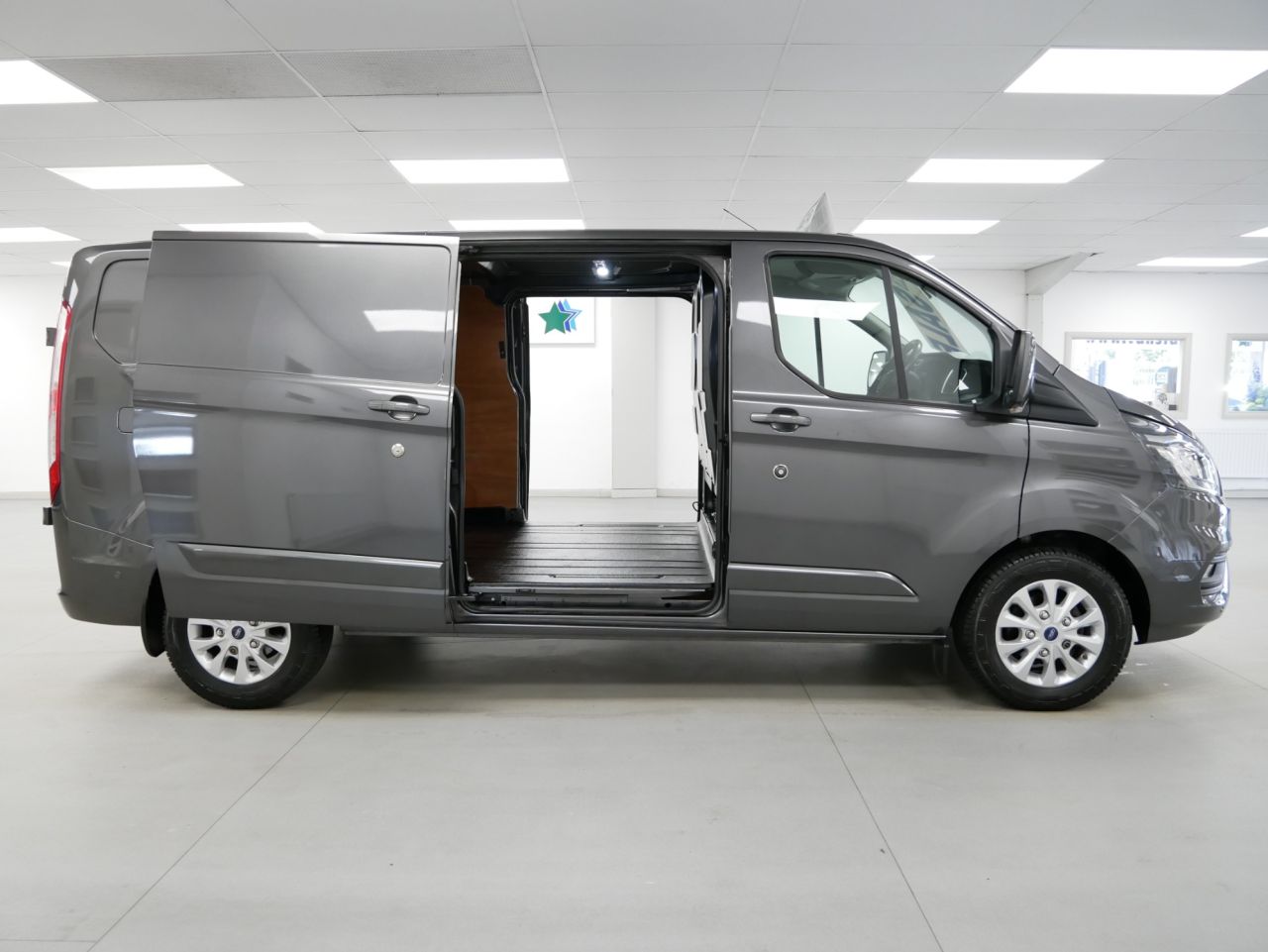 2020 Plate Ford Transit Custom 300 2.0 EcoBlue 130 BHP L2 Long Wheelbase Limited Edition Automatic 6dr . Rare Spec Example in Metallic Magnetic Grey with Air Con , 3 x Seats , UPGRADED 300 WEIGHT SPEC , AUTOMATIC GEARBOX , TWIN SIDE ACCESS DOOR / 6DR SPEC , L2 LONG WHEELBASE , CARPLAY MEDIA , Alloys , Electric Windows + Mirrors , Power Folding Mirrors , Remote Central Locking , Bluetooth , Heated Front Seat , Heated Front Screen , Cruise Control , Factory Front & Rear Parking Sensors , Cargo Lining , Bulkhead , Plus all usual styling and refinements found in the Higher Spec Limited Edition models . Euro 6 Compliant . Only 1 Owner , 57000 Miles , Excellent History ( 4 x Main Dealer Services ! ) . Great Spec , Physical Stock !