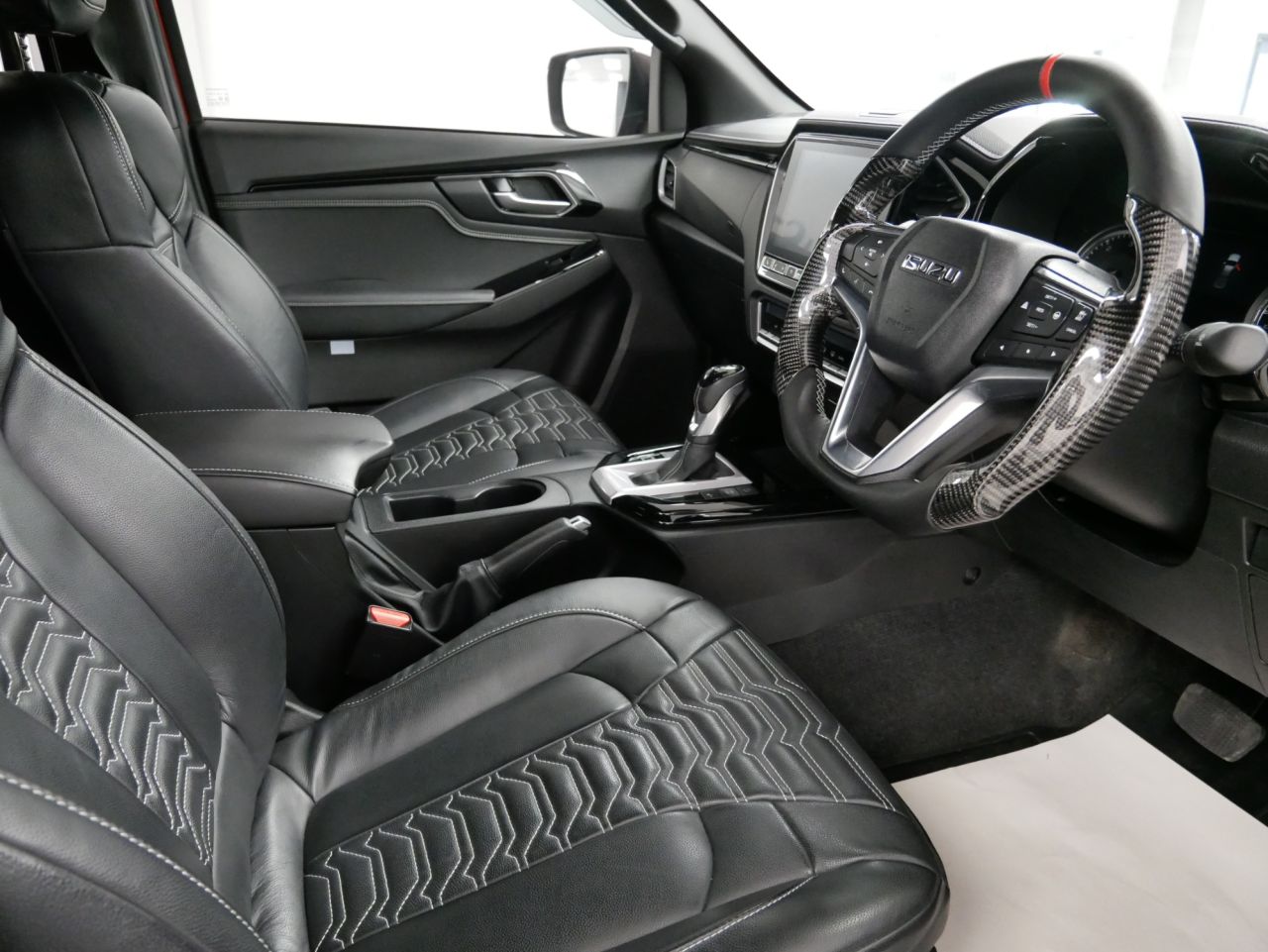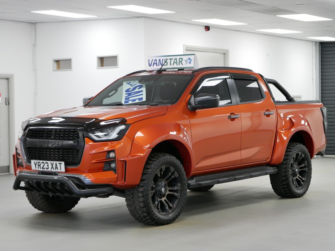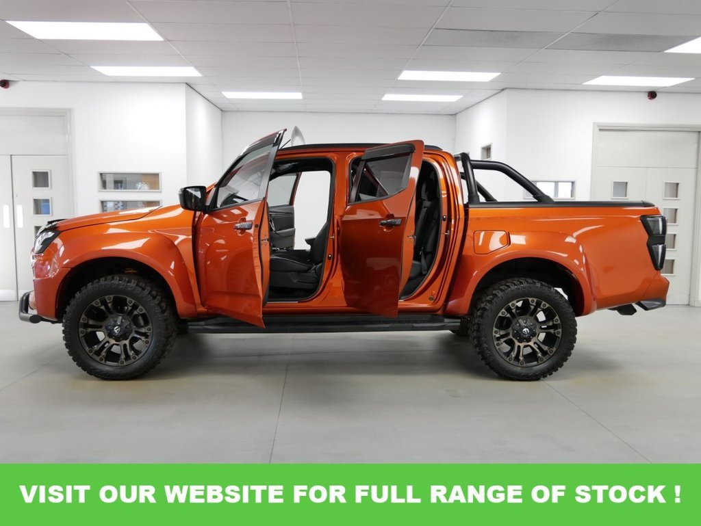 2023 Plate Isuzu D-Max 1.9 TD 165 BHP V-Cross edition 4WD Automatic Crewcab Pick-Up . High Spec Example in Metallic Sienna Orange with Dual Zone Climatic Air Con , 20" Upgrade Alloys with all Terrain Tyres , WIDE ARCH DESIGN PACK , Black Sports Bars , Carbon Fibre Steering Wheel , Grey Side Steps , Tow Pack , Factory Sat Nav Media , Full Black Leather Interior , Heated Seats , 8 Way adjustable Electric Drivers Seats , Load Cover / Roll and Lock , AUTOMATIC GEARBOX , Four Wheel Drive , Electric Windows + Mirrors , Power Folding Mirrors , Remote Central Locking , Privacy Glass , Bluetooth , Cruise Control , Parking Sensors , Reverse Camera , Load Liner , Plus all usual styling and refinements found in the High Spec V-Cross Edition models . Euro 6 Compliant . Only 1 OWNER from New , Just 8000 Miles , Great Spec , Ready To Go !