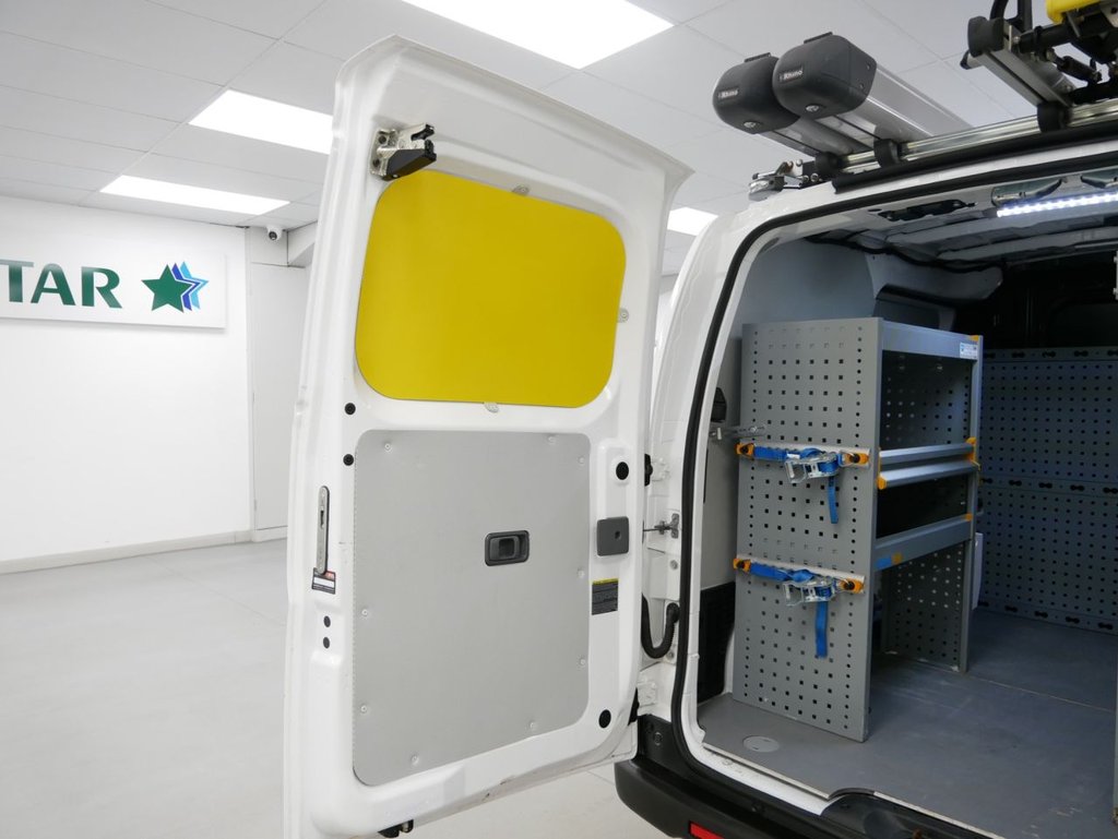 2021 Plate Nissan E-Nv200 40KWH 109 BHP Tekna ( QUICK CHARGE ) Edition Automatic 6DR.. High Spec Example in White with Air Con , Alloys , FACTORY SAT NAV , EXPENSIVE RACKING SYSTEM + PIPE TUBE , TWIN SIDE ACCESS DOORS , Electric Windows + Mirrors, Bluetooth, Remote Central Locking , DAB Radio , Rear Parking Camera, Bulkhead , Security Deadlocks , Cargo Lined , Plus all usual styling and refinements found in the Higher Spec Tekna Edition models .. Euro 6 Compliant ..ONLY 1 OWNER FROM NEW , JUST 5000 Miles , Serviced ! Ready to Go, Physical Stock !
