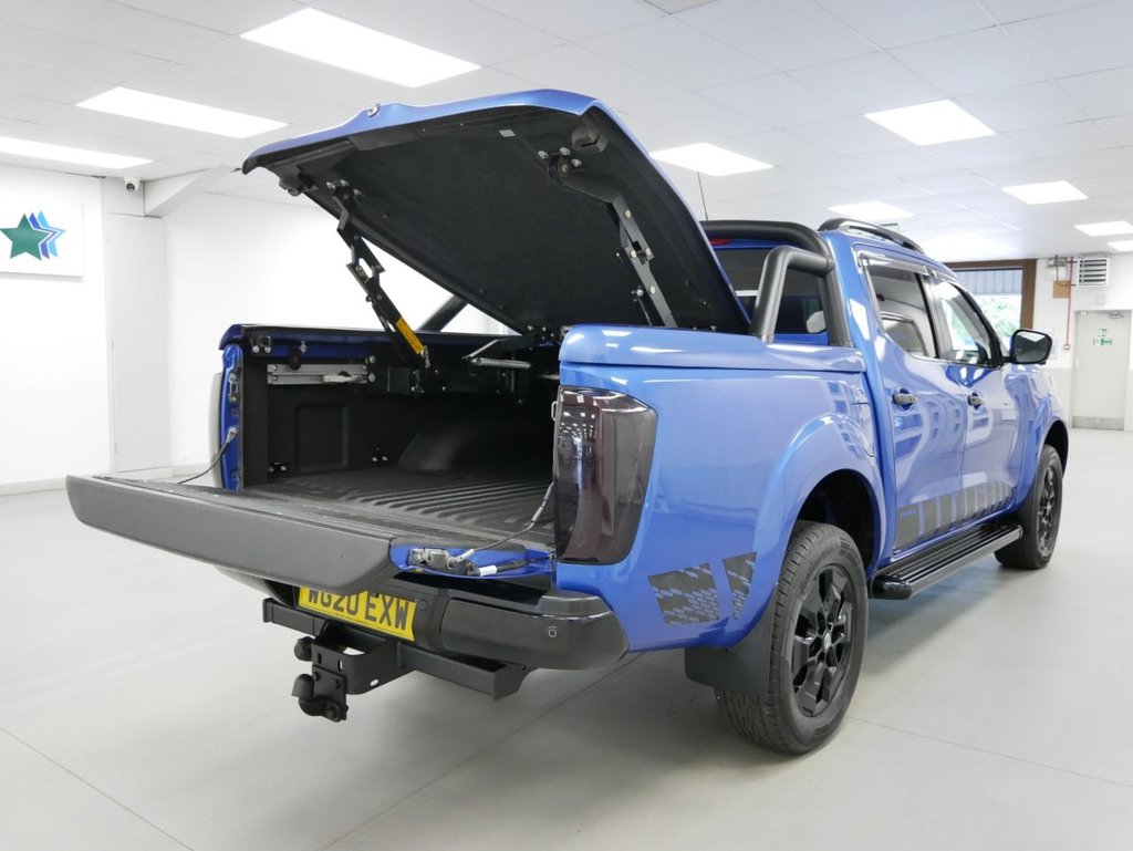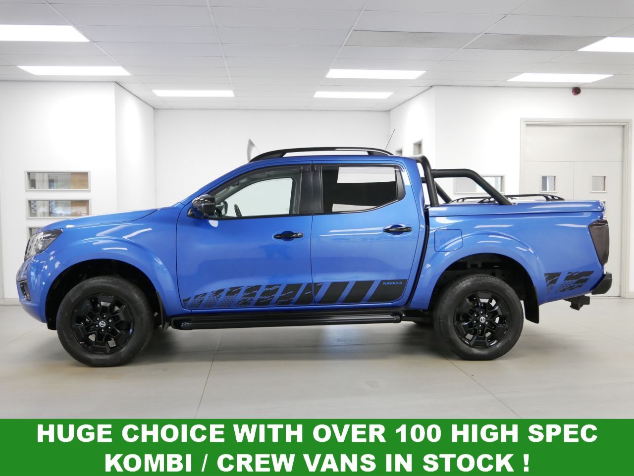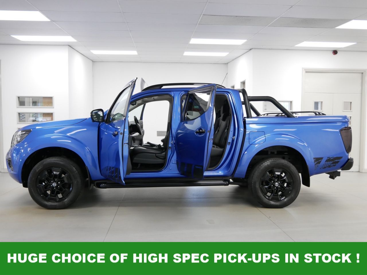 NO VAT ! .. 2020 Plate Nissan Navara 2.3 DCI 190 BHP N-Guard 4WD Automatic Crewcab Pick-Up 4 Door .. High Spec NO VAT Example in Metallic New Blue , with Air Con , SPORTBACK LIFT TOP , TOW PACK , Gloss Black Alloys , Factory Sat Nav Media , Full Black Leather Interior , Heated Front Seats , AUTOMATIC GEARBOX , Four Wheel Drive , Electric Sunroof , Electric Windows + Mirrors , Power Folding Mirrors , Privacy Glass , Bluetooth , Cruise Control , Factory Rear Parking Sensors , Reverse Camera , Roof Rails , Load Liner , Plus all usual styling and refinements found in the High Spec N-Guard Edition models .. Euro 6 Compliant .. ONLY 1 OWNER , JUST 28000 MILES FROM NEW ! 2 x Main Dealer Services ! Best of all , No VAT To Pay !