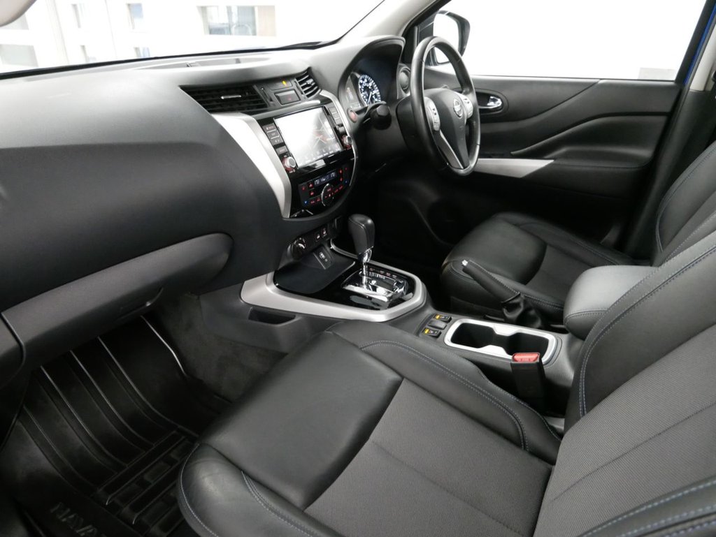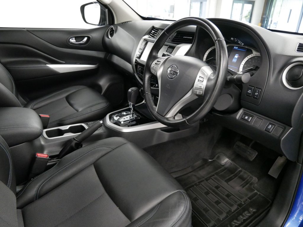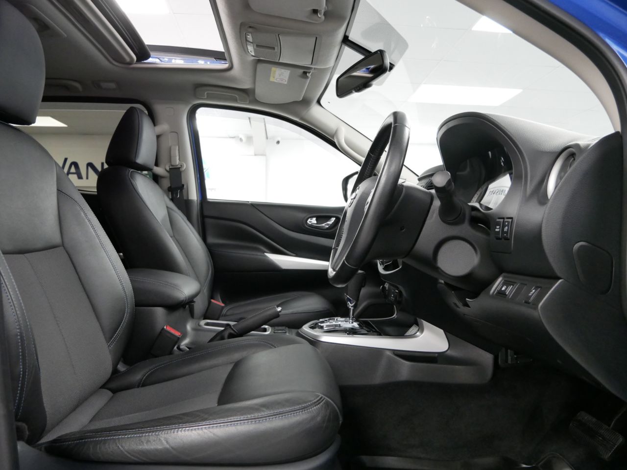 NO VAT ! . 2020 Plate Nissan Navara 2.3 DCI 190 BHP N-Guard 4WD Automatic Crewcab Pick-Up 4 Door . High Spec NO VAT Example in Metallic New Blue , with Air Con , SPORTBACK LIFT TOP , TOW PACK , Gloss Black Alloys , Factory Sat Nav Media , Full Black Leather Interior , Heated Front Seats , AUTOMATIC GEARBOX , Four Wheel Drive , Electric Sunroof , Electric Windows + Mirrors , Power Folding Mirrors , Privacy Glass , Bluetooth , Cruise Control , Factory Rear Parking Sensors , Reverse Camera , Roof Rails , Load Liner , Plus all usual styling and refinements found in the High Spec N-Guard Edition models . Euro 6 Compliant . ONLY 1 OWNER , JUST 28000 MILES FROM NEW ! 2 x Main Dealer Services ! Best of all , No VAT To Pay !