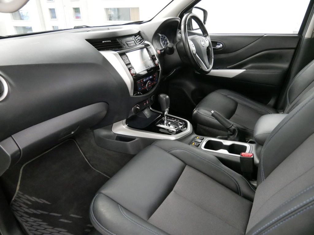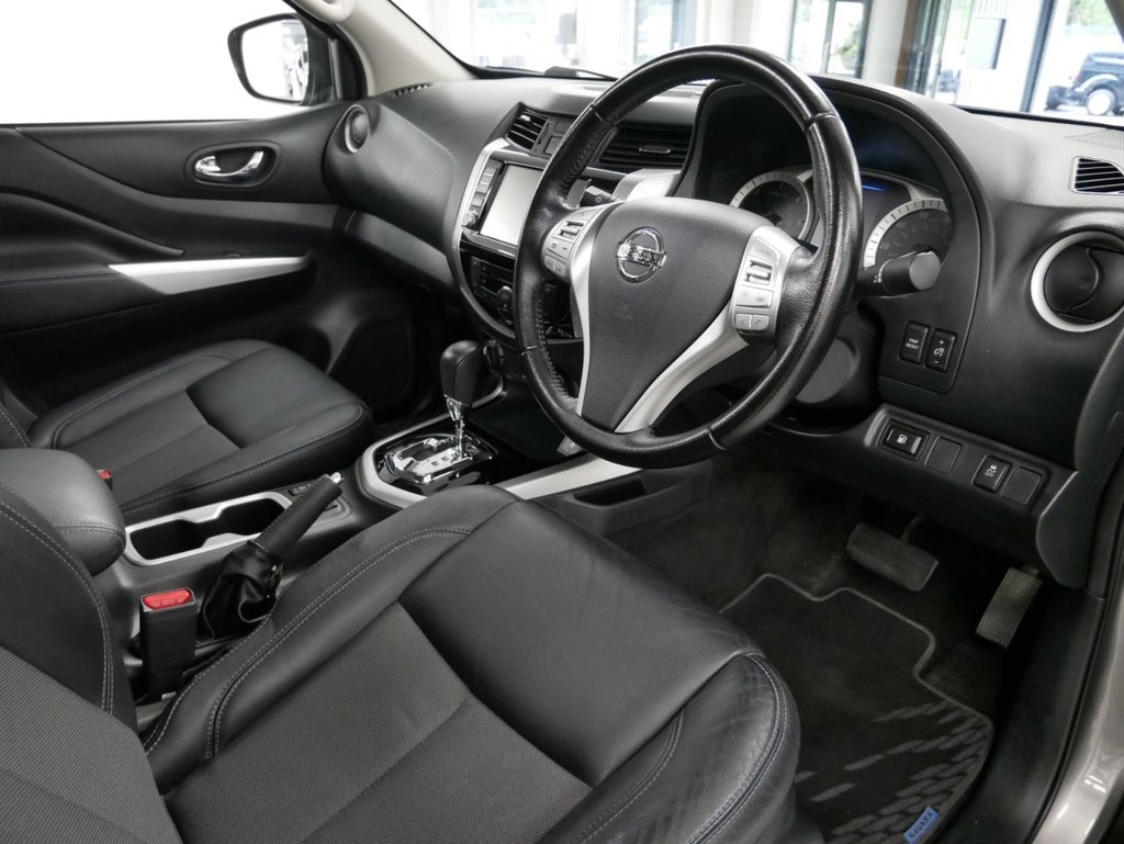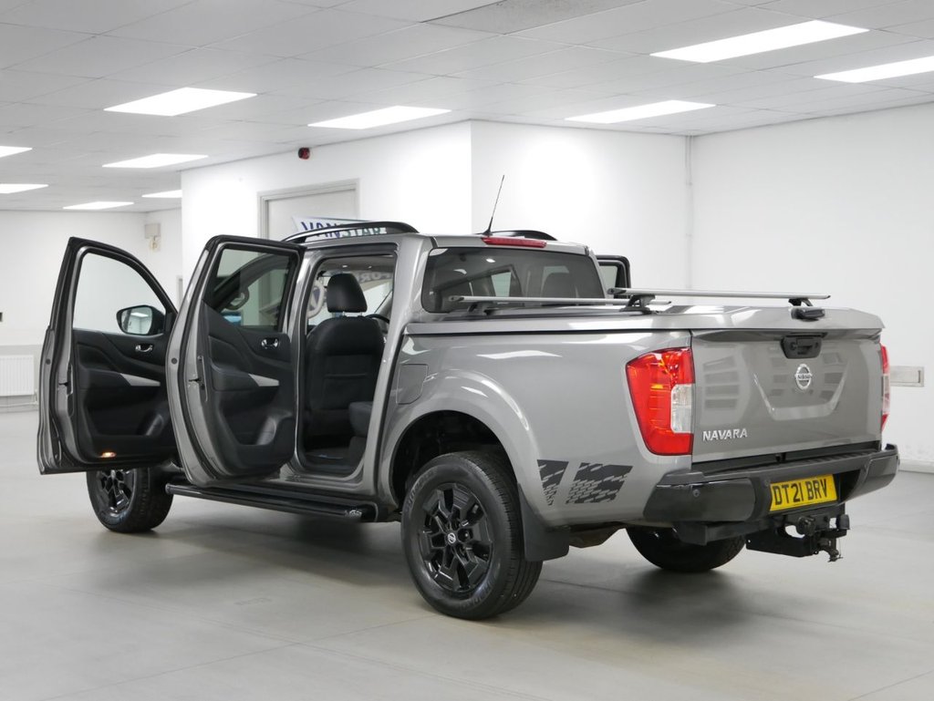 2021 Plate Nissan Navara 2.3 DCI 190 BHP N-Guard 4WD Automatic Crewcab Pick-Up 4 Door .. High Spec Example in Metallic Twilight Grey , with Air Con , SPORTBACK LIFT TOP , TOW PACK , AUTOMATIC GEARBOX , FACTORY SAT NAV MEDIA , Gloss Black Alloys , Full Black Leather Interior , Heated Front Seats , Four Wheel Drive , Electric Sunroof , Electric Windows + Mirrors , Power Folding Mirrors , Privacy Glass , Bluetooth , Cruise Control , Factory Rear Parking Sensors , Reverse Camera , Roof Rails , Load Liner , Plus all usual styling and refinements found in the High Spec N-Guard Edition models .. Euro 6 Compliant .. ONLY 1 OWNER , Excellent History ( 4 x Services ! ) .. Great Spec , Physical Stock !