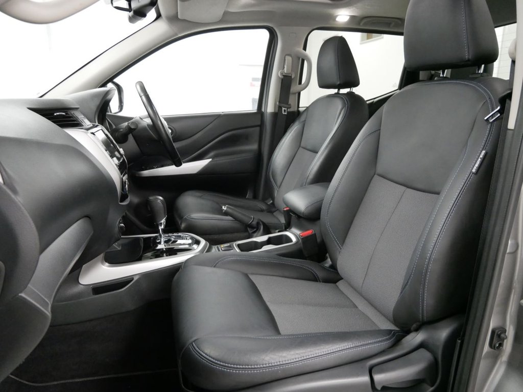 2021 Plate Nissan Navara 2.3 DCI 190 BHP N-Guard 4WD Automatic Crewcab Pick-Up 4 Door . High Spec Example in Metallic Twilight Grey , with Air Con , SPORTBACK LIFT TOP , TOW PACK , AUTOMATIC GEARBOX , FACTORY SAT NAV MEDIA , Gloss Black Alloys , Full Black Leather Interior , Heated Front Seats , Four Wheel Drive , Electric Sunroof , Electric Windows + Mirrors , Power Folding Mirrors , Privacy Glass , Bluetooth , Cruise Control , Factory Rear Parking Sensors , Reverse Camera , Roof Rails , Load Liner , Plus all usual styling and refinements found in the High Spec N-Guard Edition models . Euro 6 Compliant . ONLY 1 OWNER , Excellent History ( 4 x Services ! ) . Great Spec , Physical Stock !