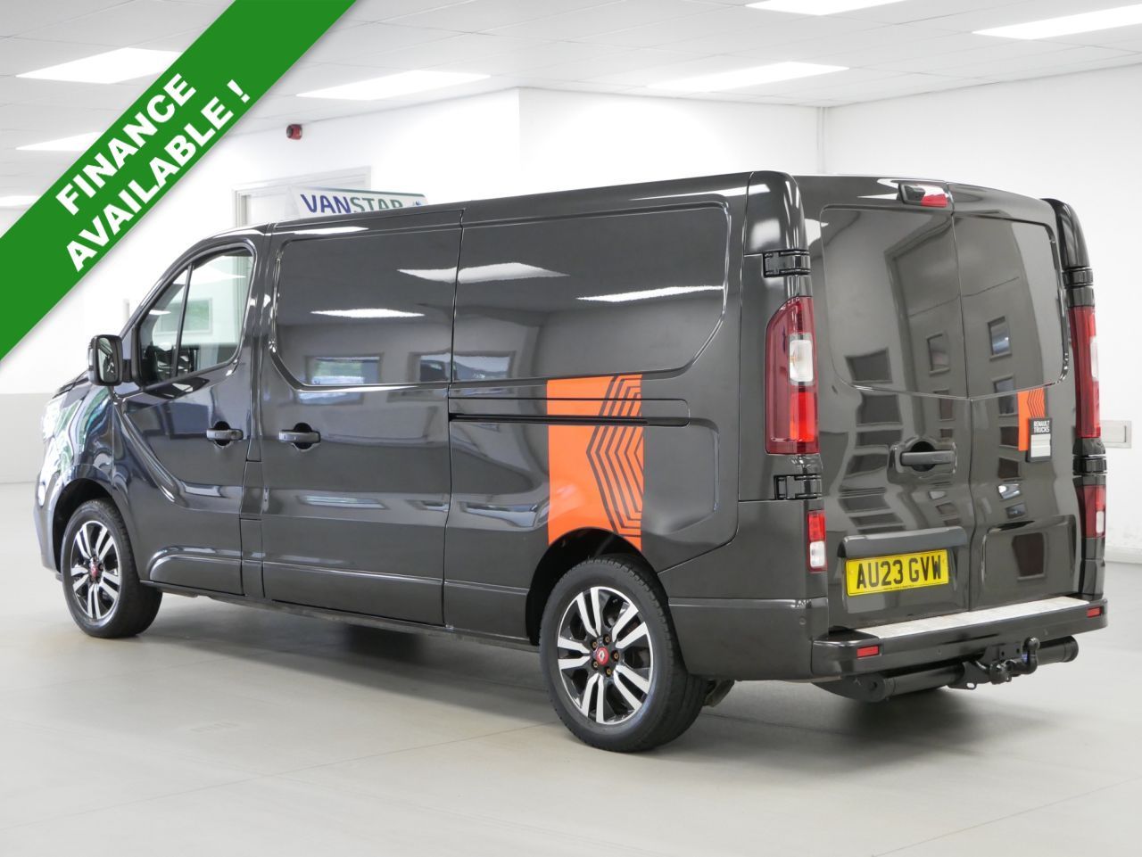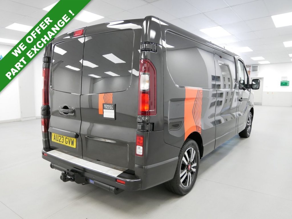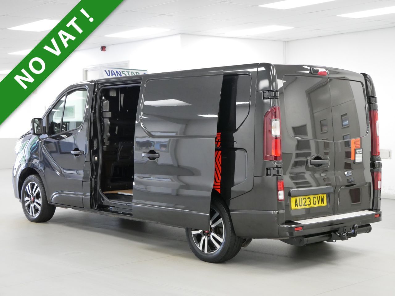 NO VAT ! .. 2023 Plate Renault Trucks Trafic 30 2.0 BlueDCI 150 BHP LL Long Wheelbase Red Edition 5dr .. High Spec NO VAT Example in Jet Black with Air Con , Alloys , CARPLAY MEDIA , LL LONG WHEELBASE , HIGHER 150 BHP OUTPUT ENGINE , UPGRADED 30 WEIGHT SPEC , 3 Seats , Electric Windows + Mirrors , Remote Central Locking , Bluetooth , Cruise Control , Factory Rear Parking Sensors , Cargo Lining , Bulkhead , Factory Rear View Camera , Red Edition Decal Pack , Plus all usual styling and refinements found in the High Spec Red Edition models .. Euro 6 Compliant .. ONLY 1 OWNER , 66000 Miles , Serviced ! Best of all , No VAT To Pay !