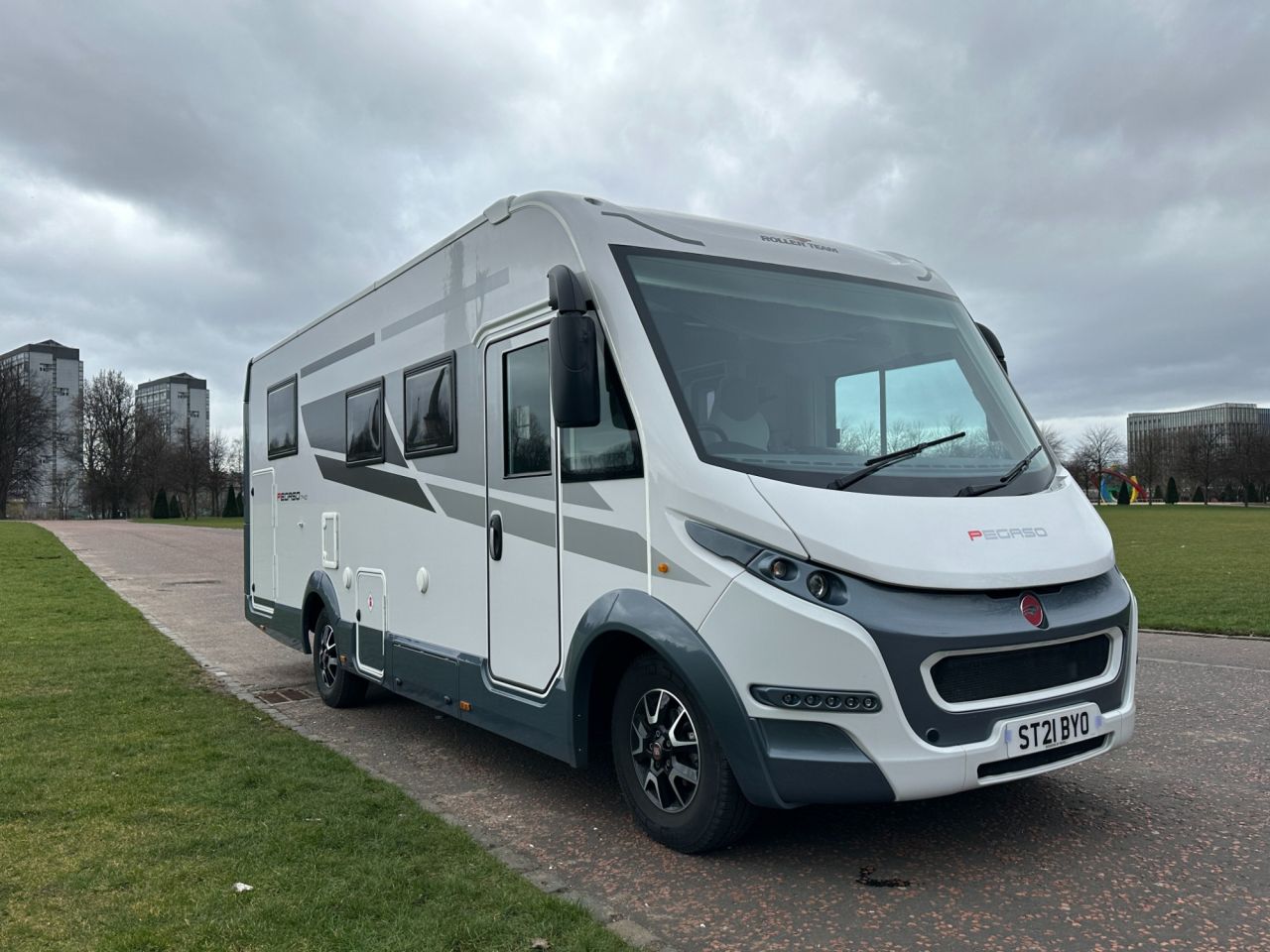 Motorhome World are delighted to offer this A Class Roller Team Pegaso 740 based on the Fiat Ducato award winning 2-3 multi-jet 140 bhp 9 speed Automatic, this motorhome is luxury and is built by Rollerteam using the finest of materials just some of the features it benefits from below are Cab Blinds Including Side Windows Power Steering Mukti Function steering wheel 16" Diamond Cut Alloys Thetford 3 Gas Burner Hob Thetford 3 Way Fridge With Freezer 3-point seat belts on all travelling seats Adjustable Driver & Passenger Seats Leather Upholstery Drivers and passenger captain swivel seats Drop down bed Alloy Wheels Arm Rests Audio System Battery Charger Bike Rack Fitted Blinds Blown Air Heating Truma Central heating Bluetooth hands free Phone Cab Air Conditioning Cassette Toilet Charger/Transformer System Cruise Control Door Flyscreen Double Glazed Windows Driver's Airbag Driver's Swivel Seat DRL - Daytime Running Lights Electric Mirrors Exterior 12v Awning Light External Gas Locker Fly Screens Flyscreens & Night Blinds Freezer Fresh & Waste Water Tank Indicator Fridge Full Oven & Grill Gas & Electric Water Heater Gas hob With Glass Lid High Level Brake Light Integral Moulded Entrance Step Integrated Sat-Nav System Leisure Battery Mains Electric Manufacturers Engine Immobiliser Motorhome Specific Sat Nav Onboard Water Tank Thetford Gas Oven Grill Passenger Airbag Passenger Swivel Seat Rear View Camera Remote Locking To Cab Doors Removable Loose Fit Carpets Separate Shower Cubicle Solar Panel Steering Wheel Audio Controls Steering Wheel Controls For Radio & Telephone Swivel Seats To Cab Television in lounge Television in bedroom Toilet With Pull-Along Cassette Underbed Storage USB Point In Cab Vinyl Flooring Wardrobe Windscreen Blind Rear Garage Fixed Island Bed Reading lights Full separate shower with twin drains Wash hand basin Vanity unit This motorhome will come with a NEW 12 months MOT and is full HPI clear check and comes with a 3 years comprehensive warranty & a full NCC approved workshop habitation check