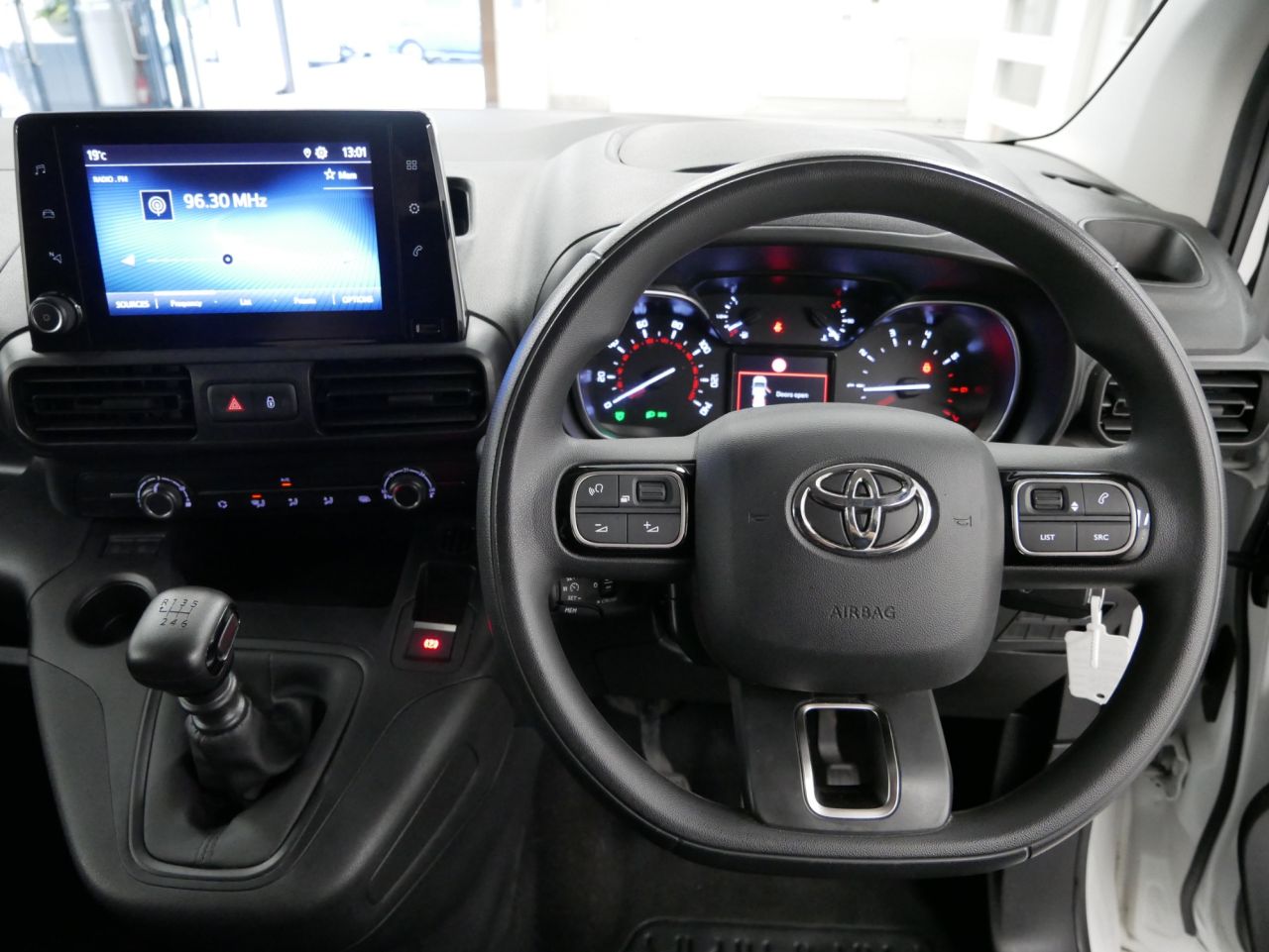 72 Plate Toyota ProACE City 1.5 BlueHDI 100 BHP L1 SWB Icon Edition 6dr . Great Spec Example in White with Air Con , 3 x Seats , CARPLAY MEDIA / SMARTPHONE SAT NAV , TWIN SIDE DOORS / 6 DOORS , Electric Windows + Mirrors , Bluetooth , Cruise Control , Park Sensors , Reverse Camera , Cargo Lining , Bulkhead , Plus all usual styling and refinements found in the Higher Spec Icon Edition models . Euro 6 Compliant . ONLY 1 OWNER , Just 51000 Miles , 3 x Services ! Great Spec , Ready to Go !