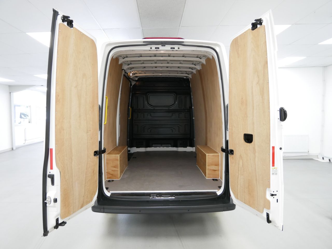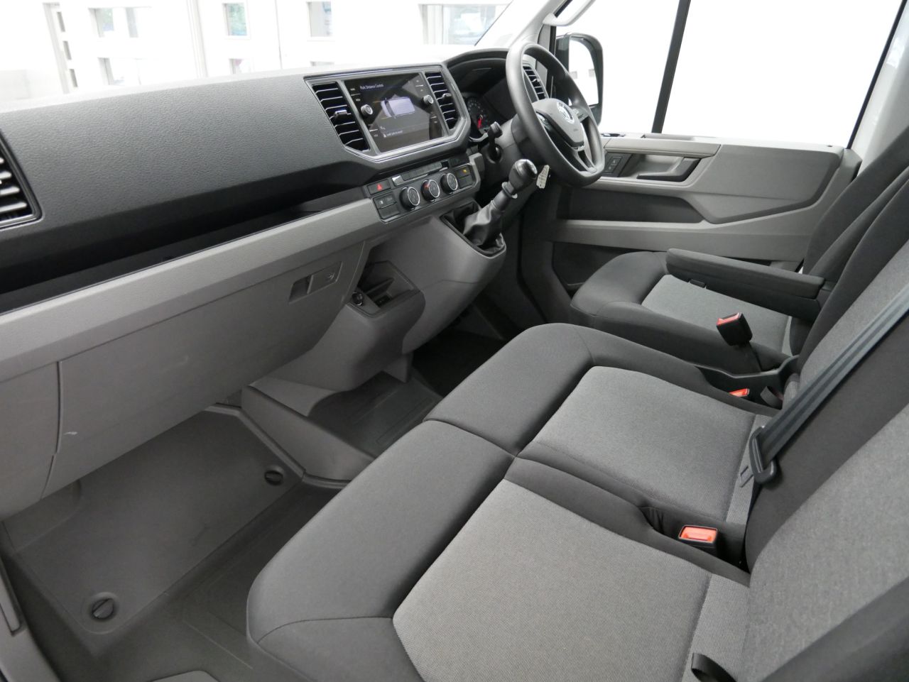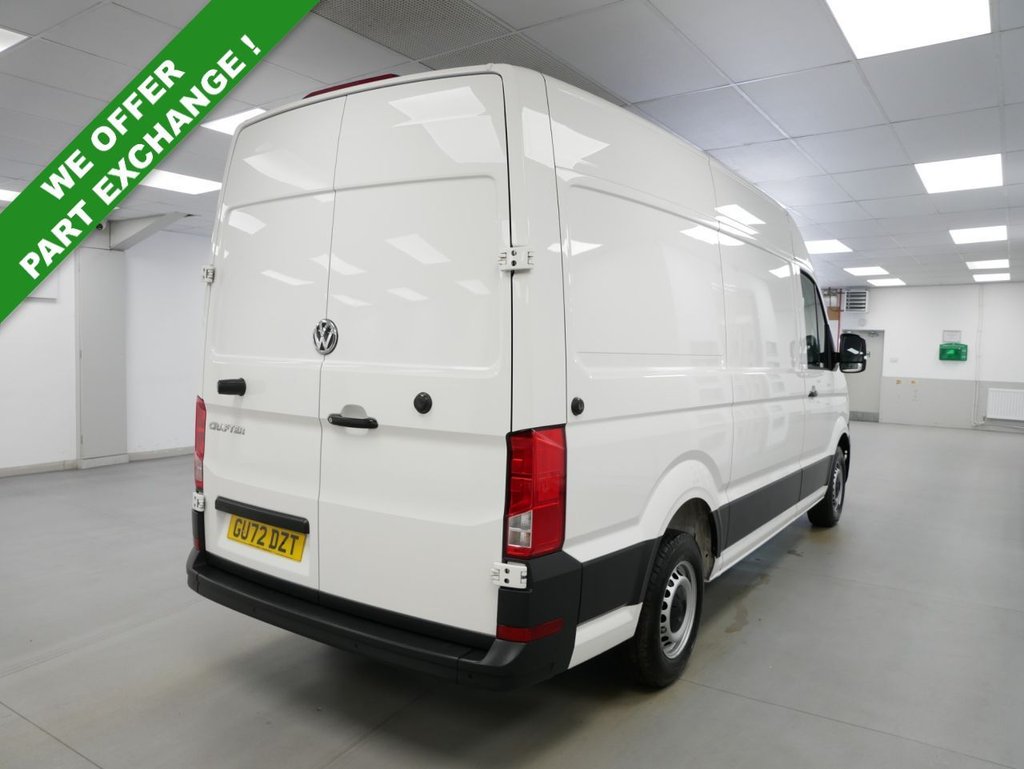 72 Plate Volkswagen Crafter CR35 2.0 TDI 140 BHP L2 Medium Wheelbase High Roof Trendline Edition 5dr . High Spec in Candy White with Air Con , 3 x Seats , FACTORY SAT NAV MEDIA , L2 MEDIUM WHEELBASE , HIGHER 140 BHP ENGINE OUTPUT , UPGRADED 350 WEIGHT CLASS , Electric Windows + Mirrors , Remote Central Locking , Bluetooth , Cruise Control , Factory Front & Rear Parking Sensors , Dab Radio , Cargo Lining , Bulkhead , Plus all usual styling and refinements found in the Higher Spec Crafter Trendline models . Euro 6 Compliant . ONLY 1 OWNER , 34000 Miles , Serviced ! Great Spec , Physical Stock !