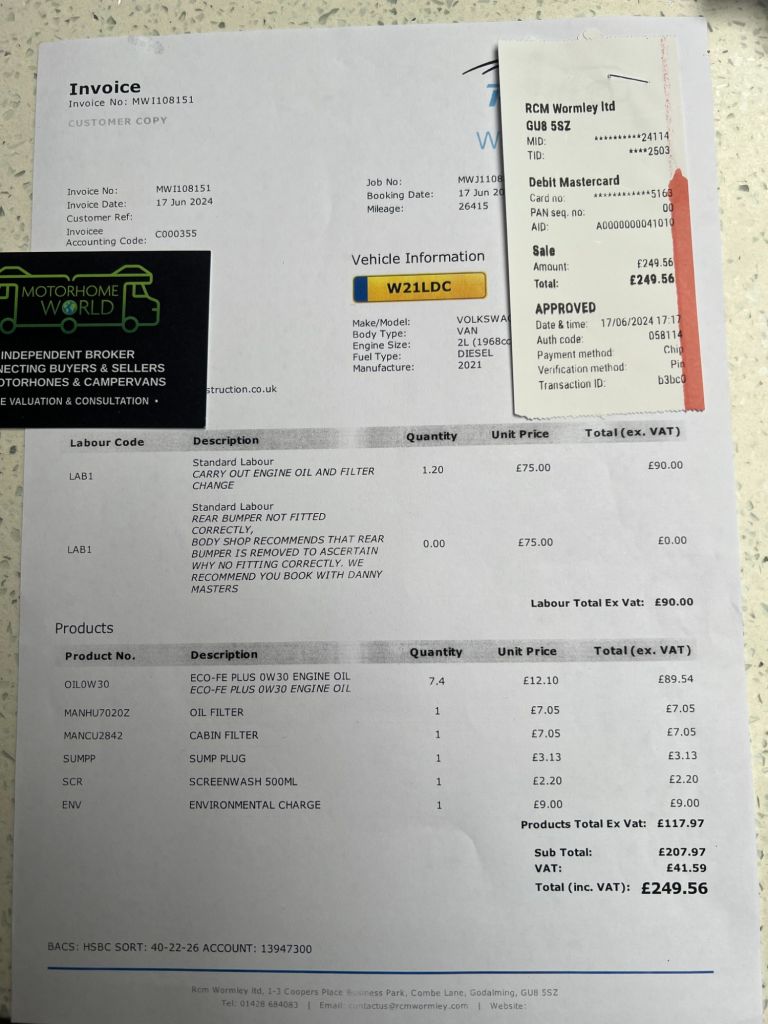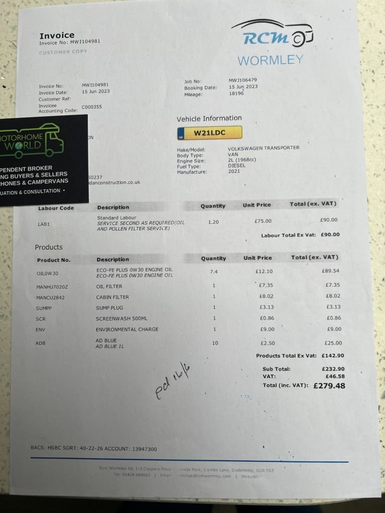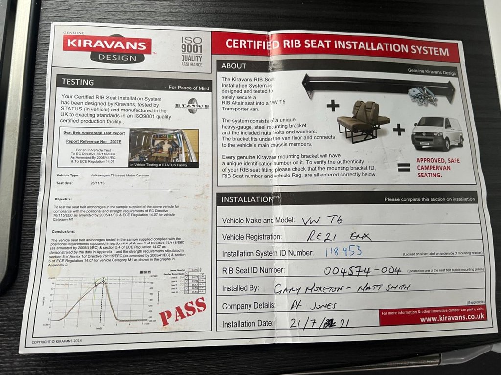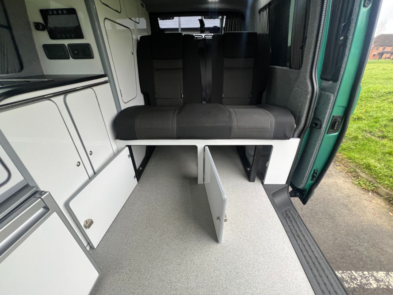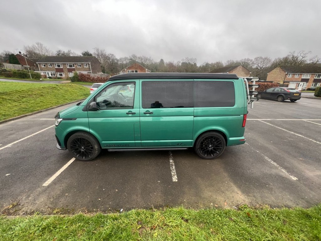 Stunning VW T6-1 Campervan, 2021,4 Berth 4 Belted seats, DSG Automatic 2 litre, 29,579 miles. Motorhome World Southwest would like to present this Stunning Green well equipped upgraded T6-1 VW Campervan, TDi T28 professionally converted by Surrey Campervans from new in 2021, with the addition of a fitted Panoramic Pop Top, 4 berth, Captains chairs (1 Front seat swivels) with 4 belted seats, and very good service history. > RIB BED • Cab Air Con Tailgate • Captains Swivel front seat, leather embossed with VW Logo • 2 Further rear belted seats • 19" Black Alloys • Full internal lighting • Table • Rib Bed • Pop Top • Autotherm Diesel Blown Heating • External Front Window Screen • 4 bike rack • Reversing Sensors • Ample, rear and under bed storage • Gas Hob • Fridge with Cold Box • Cup Holders • Radio/CD Player • Good Service History • 4 Berth, Pop Top with foam Mattress • 240 pop up sockets • USB Sockets • Smart Track Tracker • Leisure Battery with Solar panel • Calor Gas Bottle • Spare Wheel • External Fixed awning rail This vehicle will come with a full HPI check and will be issued with a NCC Habitation Check and 3 YEARS Warranty